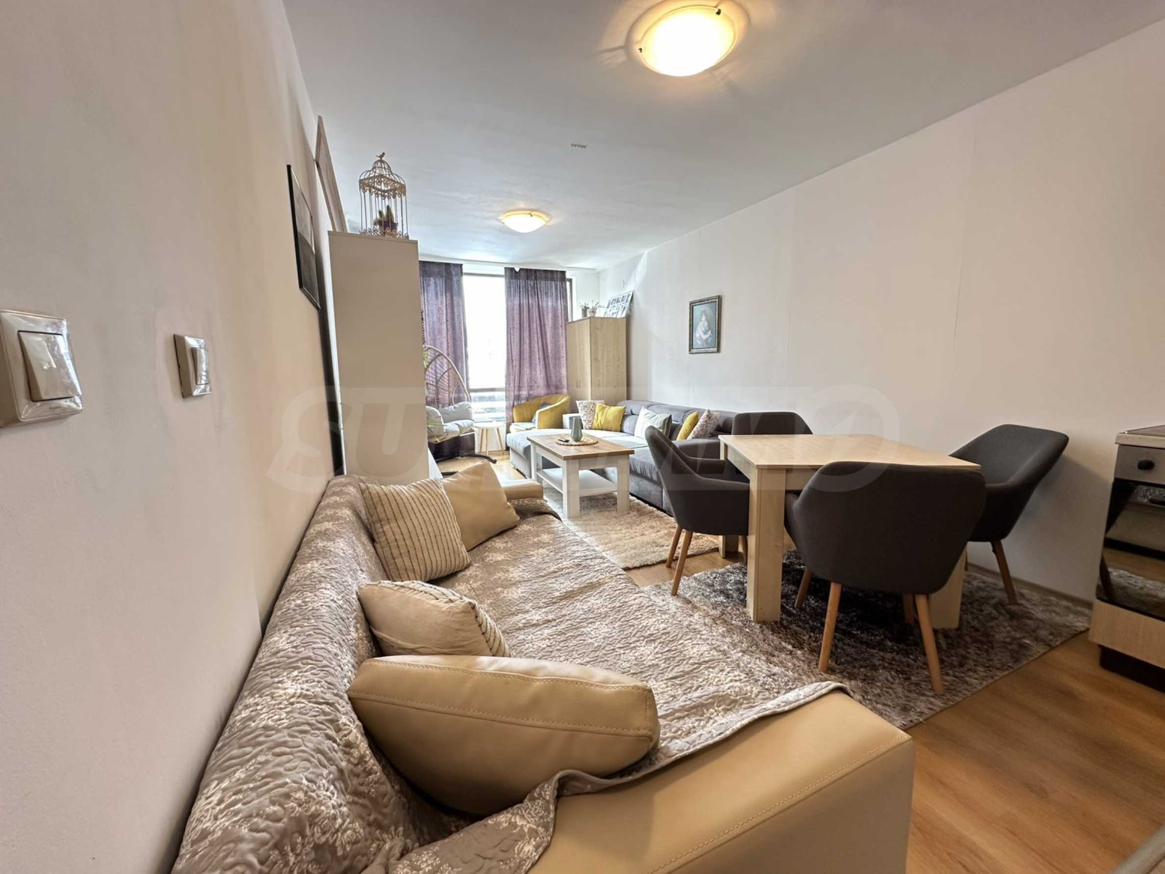 We present a furnished one-bedroom apartment in a complex near Pirin Golf and 10 km from the ski lift in Bansko.