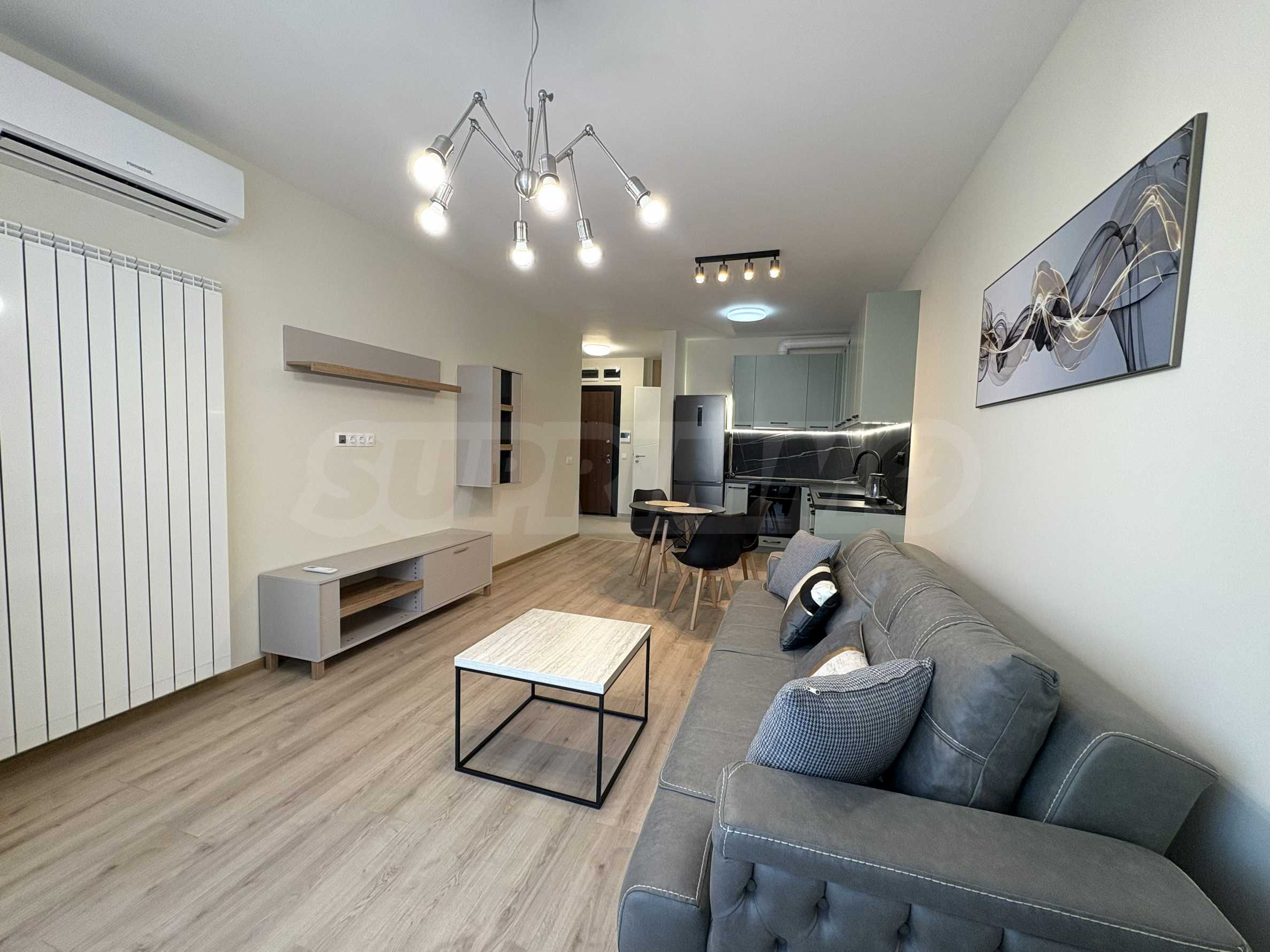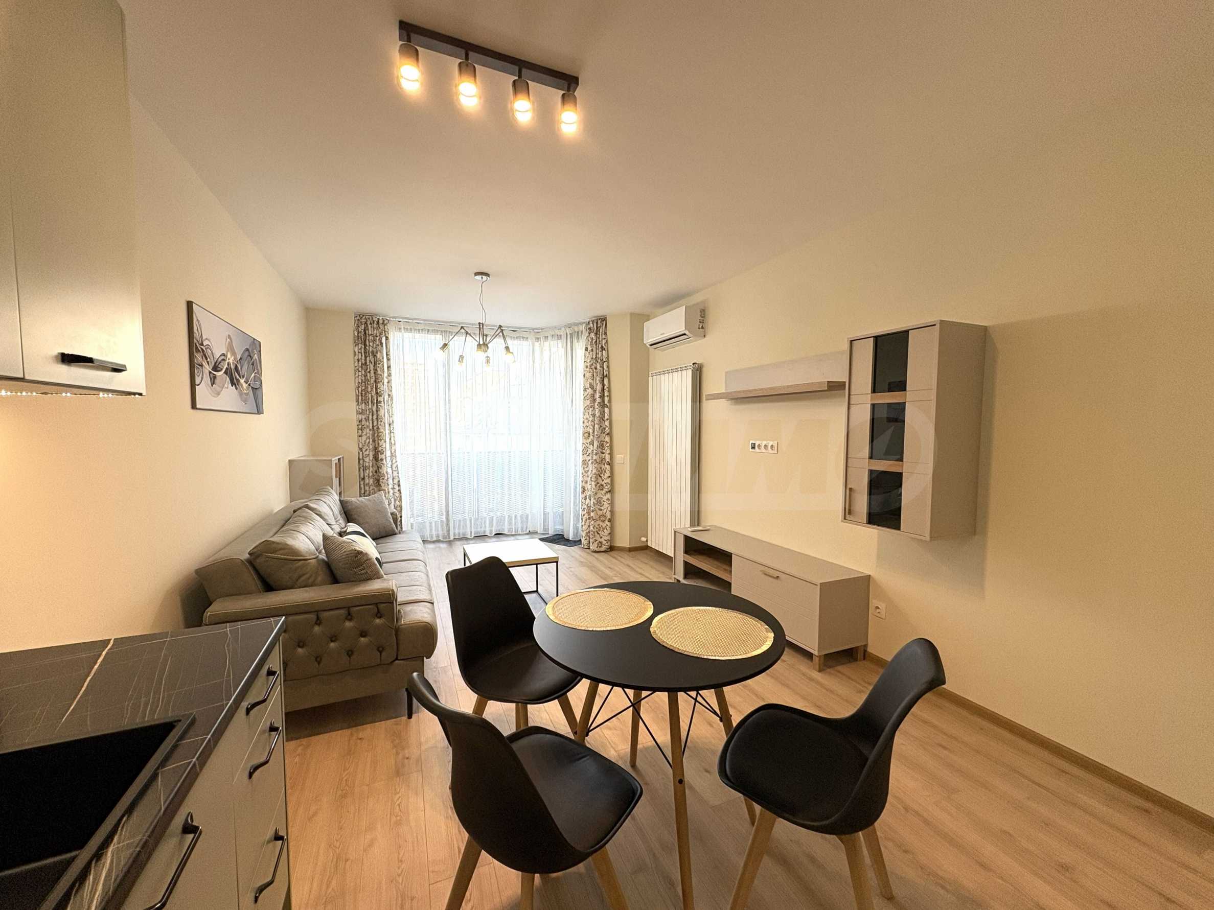• Bright living room with designer furniture and a sofa with sleep function;