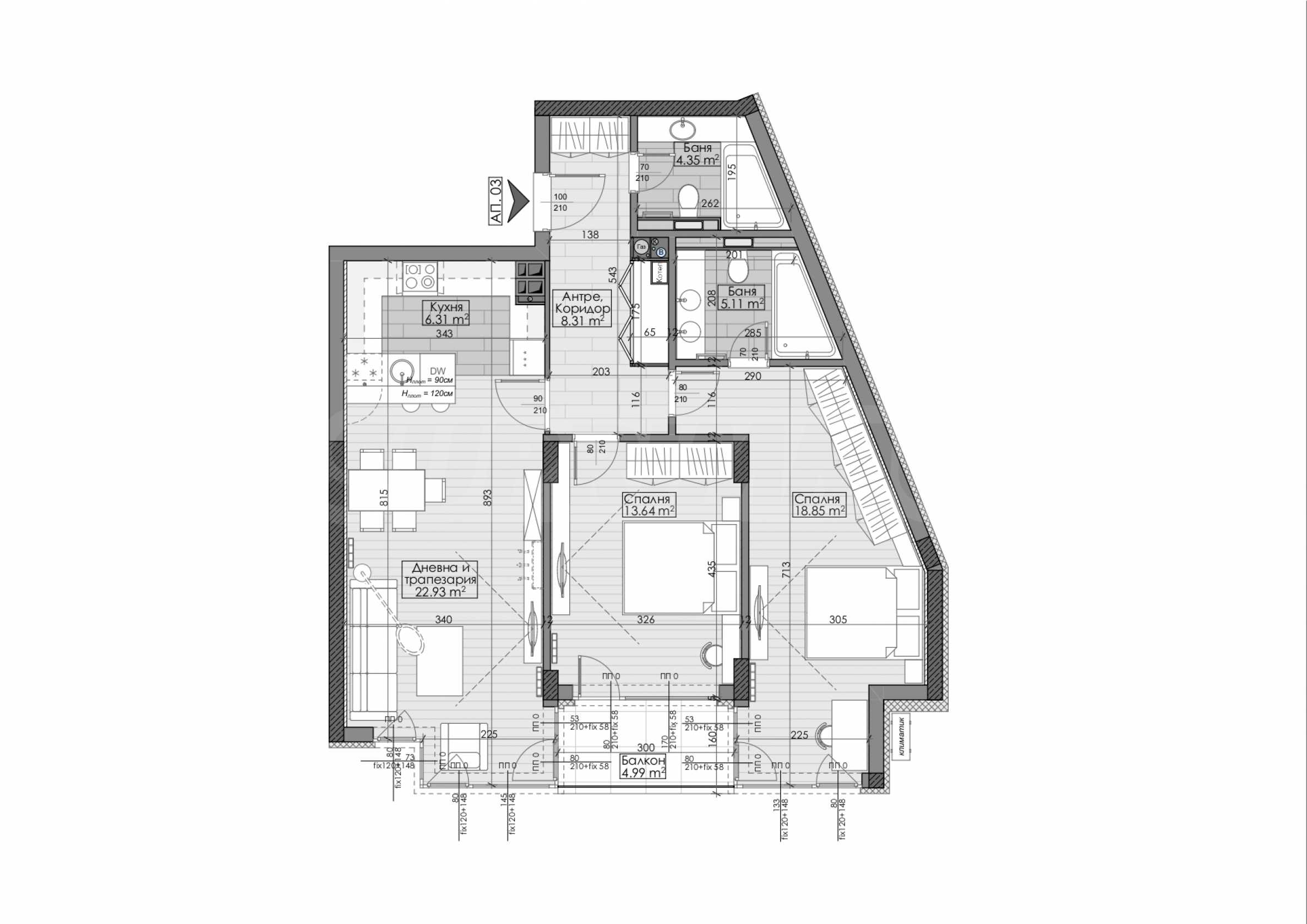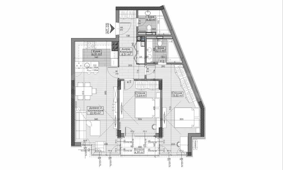 The facade is designed with Laminam cladding, in the style of elegant urban architecture, combining durability and a representative appearance. The thermal insulation is 10 cm Baumit, providing excellent energy efficiency.
