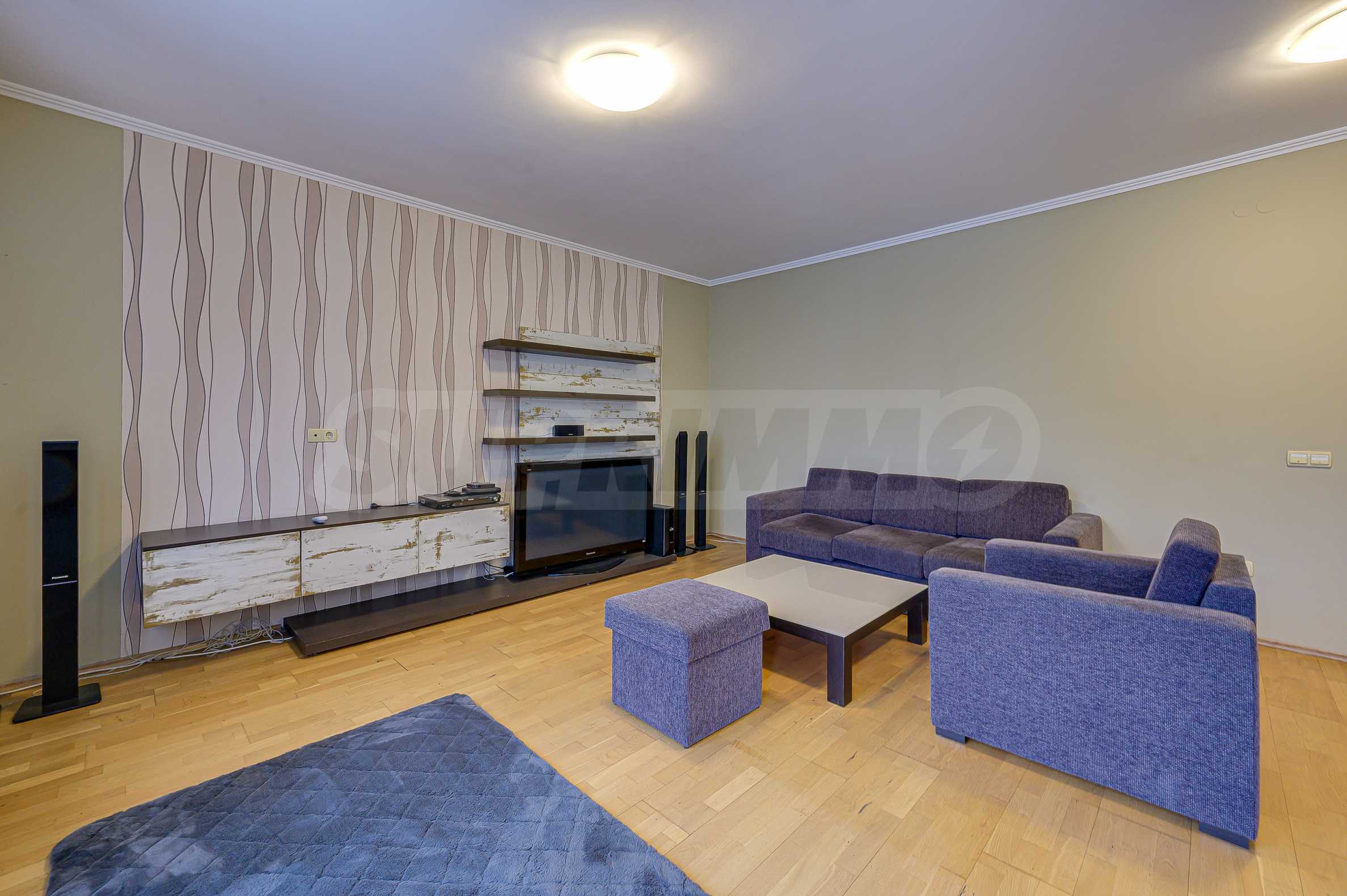 We present you a two-bedroom apartment for rent in a complex built in 2009, which is distinguished by professional security and a beautiful, well-kept garden. It also houses the luxurious restaurant PROYA, which offers an exceptional atmosphere and delicious cuisine. The terraces of the apartment offer impressive views of the Vitosha Mountain and the capital Sofia.