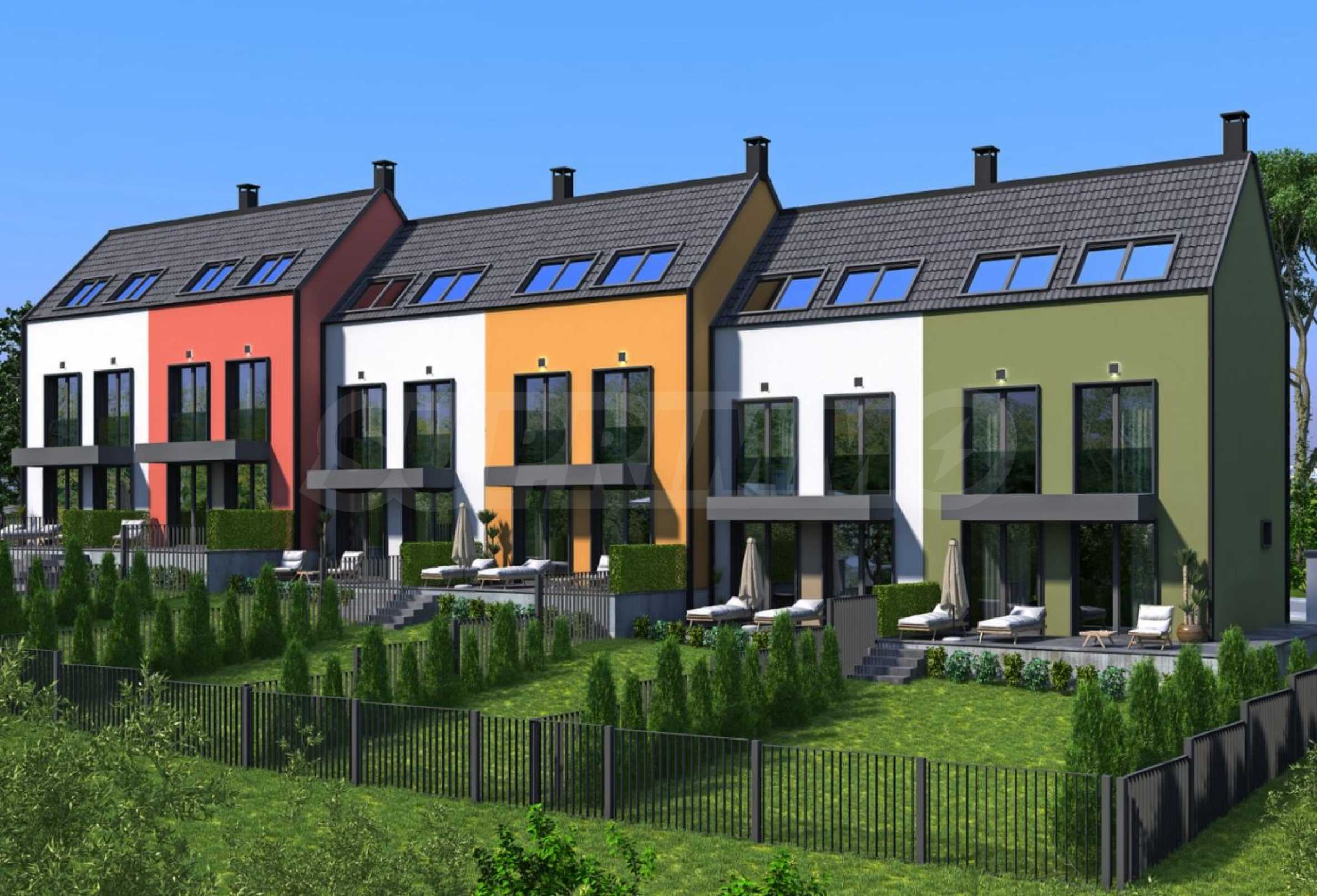 We present for sale a modern terraced house, part of a new residential complex of several houses in the preferred area of Gorna Traka, just 1.5 km from the resort of St. St. Constantine and Elena. The location is distinguished by convenient access from three main roads, a quiet environment and a quick connection to the city.