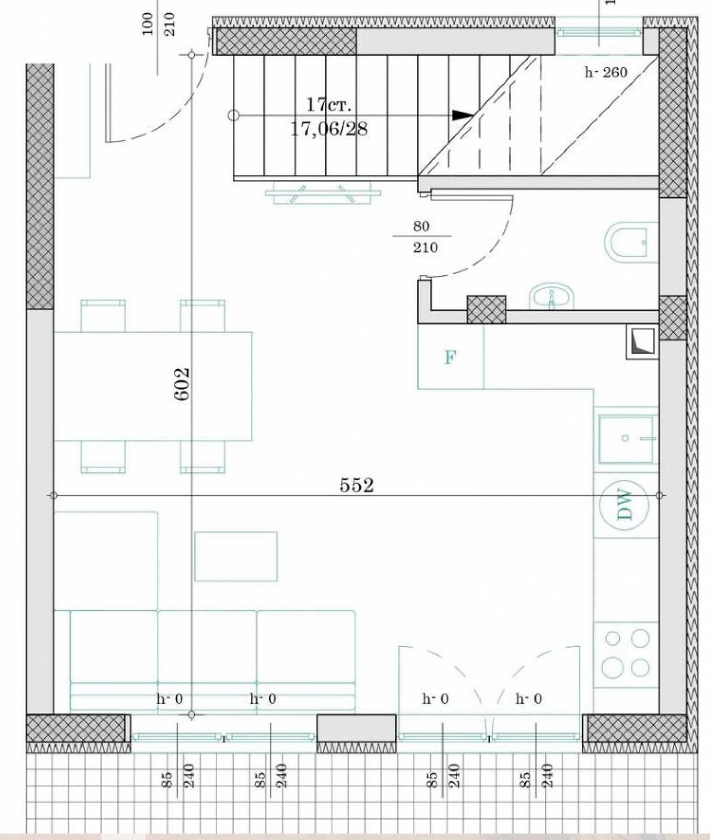 The property with a total area of 125 m2 is on a plot of 115 m2 and with the following distribution: