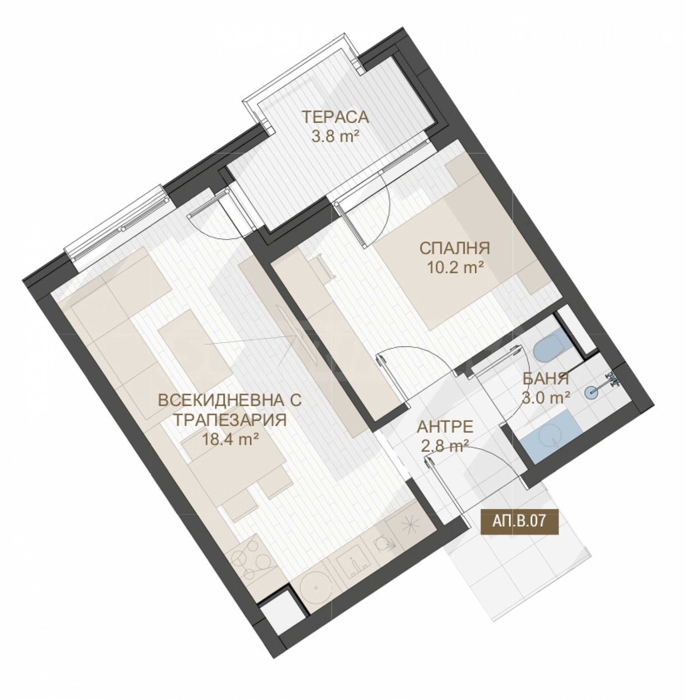 We present a one-bedroom apartment in a new project in the heart of Plovdiv, combining innovative design, functionality and sophisticated elegance. Top location in the city center, with quick access to shopping areas - Main, Kapana, educational institutions, green spaces, sports and recreation opportunities, providing convenience and high quality of life.