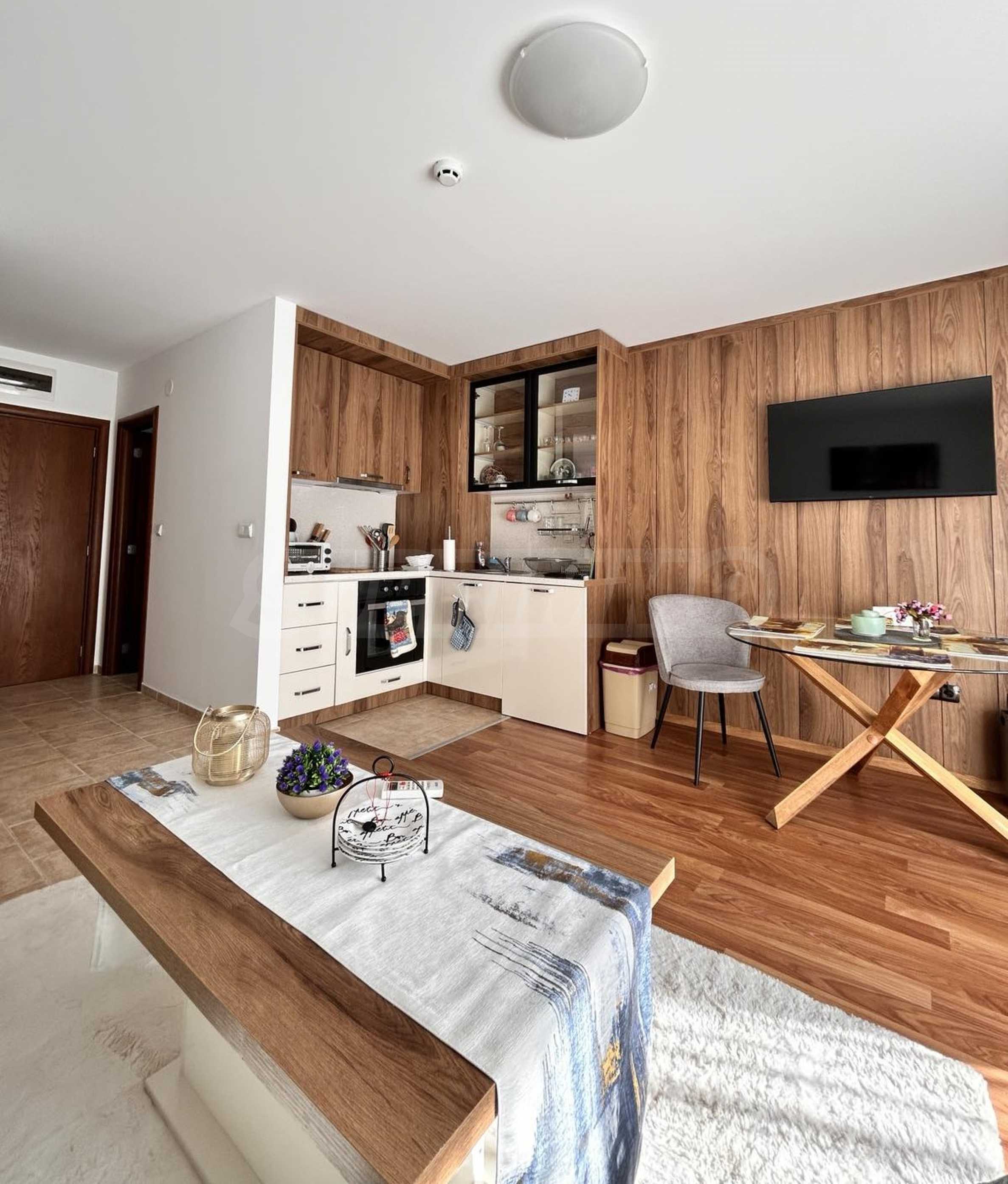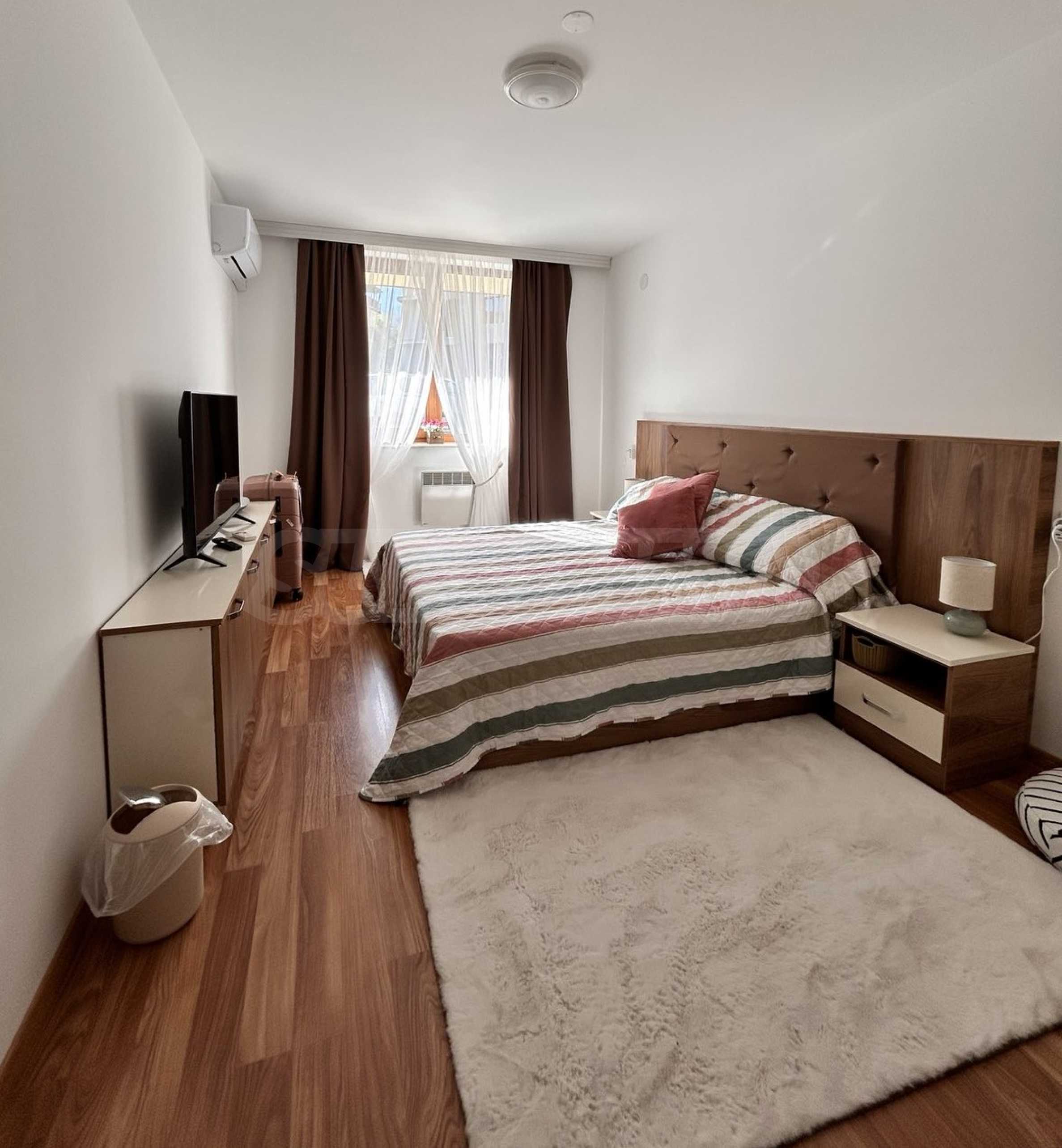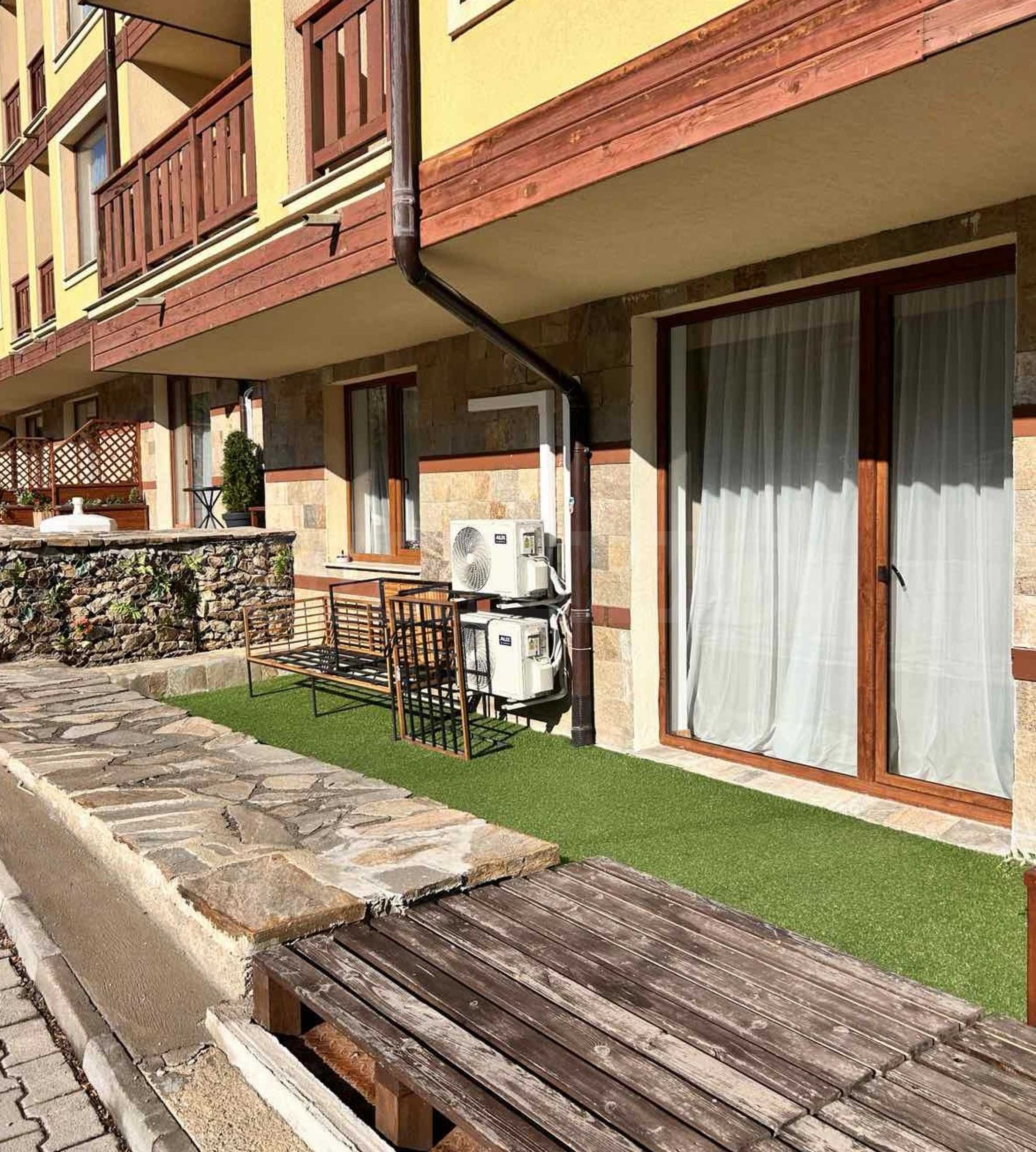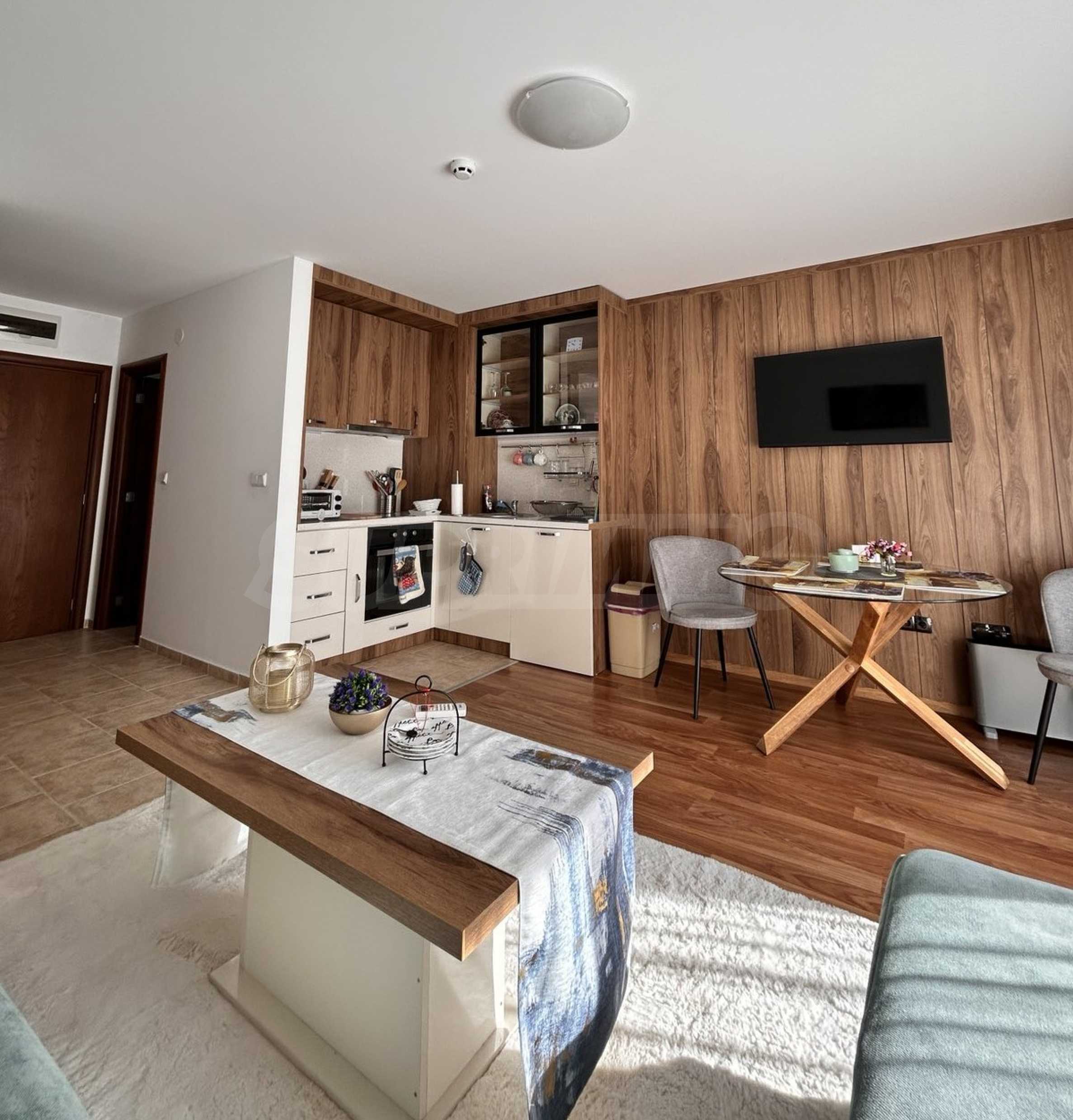 We present a modernly furnished one-bedroom apartment 600 m from the ski area and the lift in a year-round complex in Bansko.