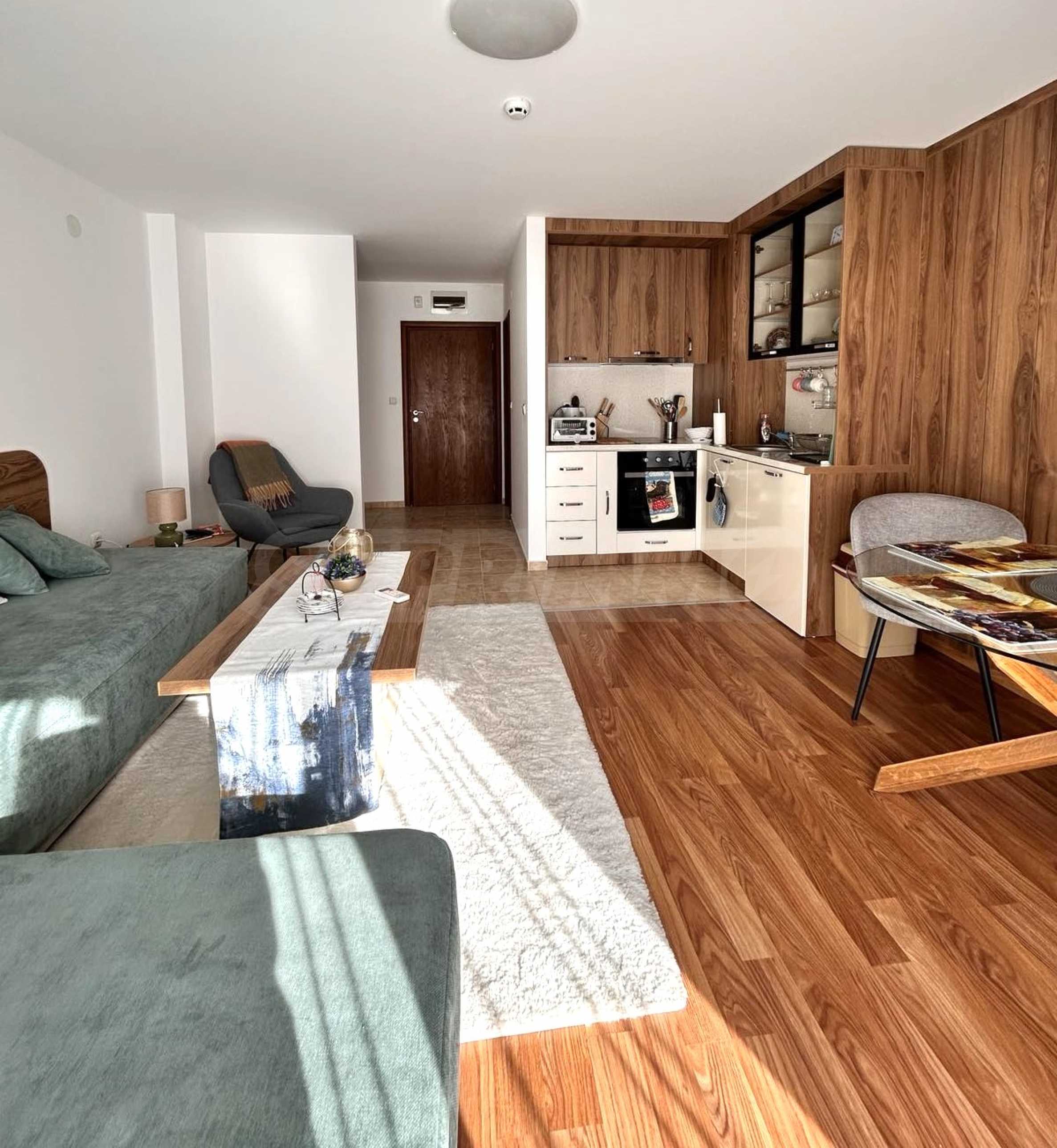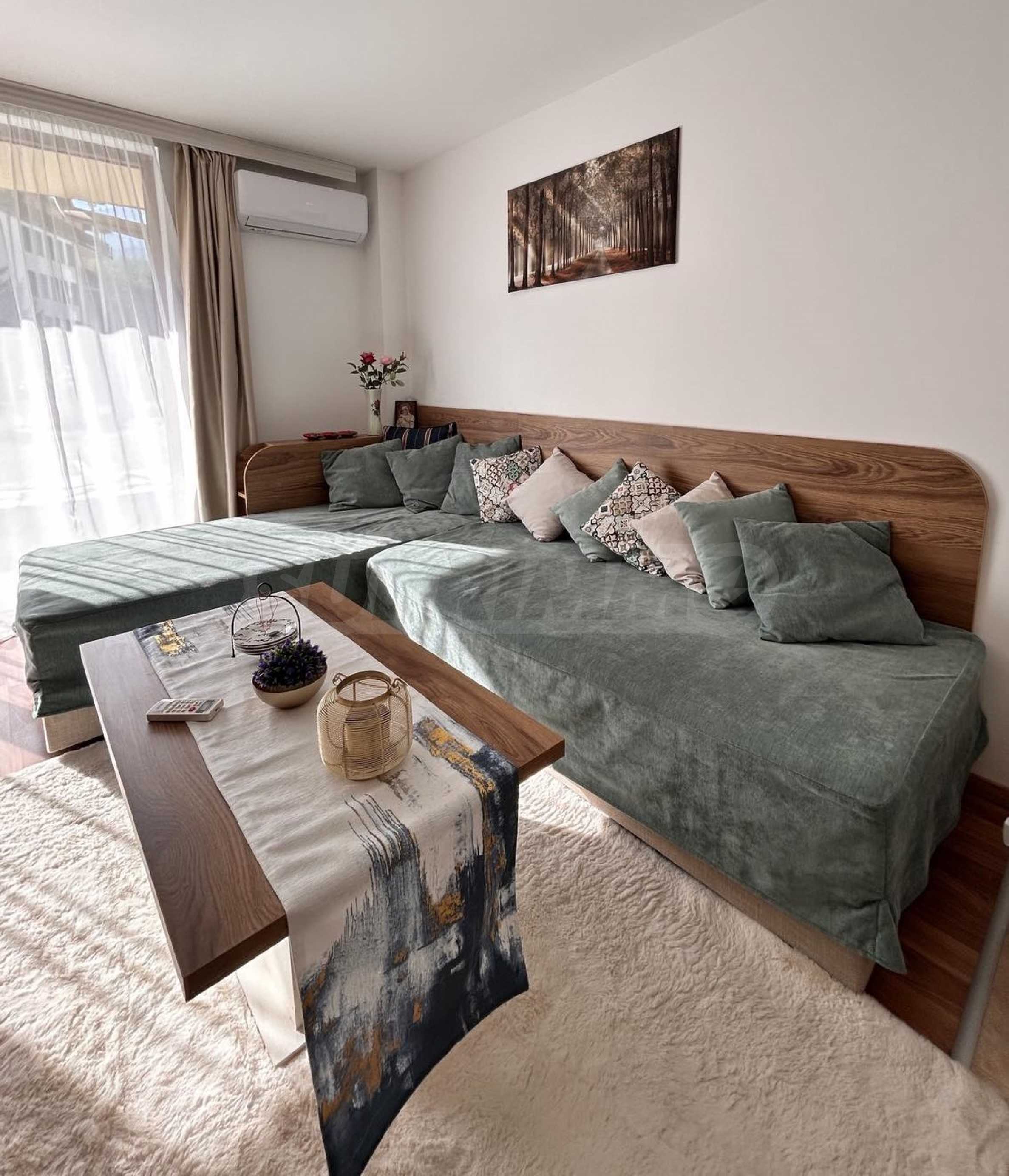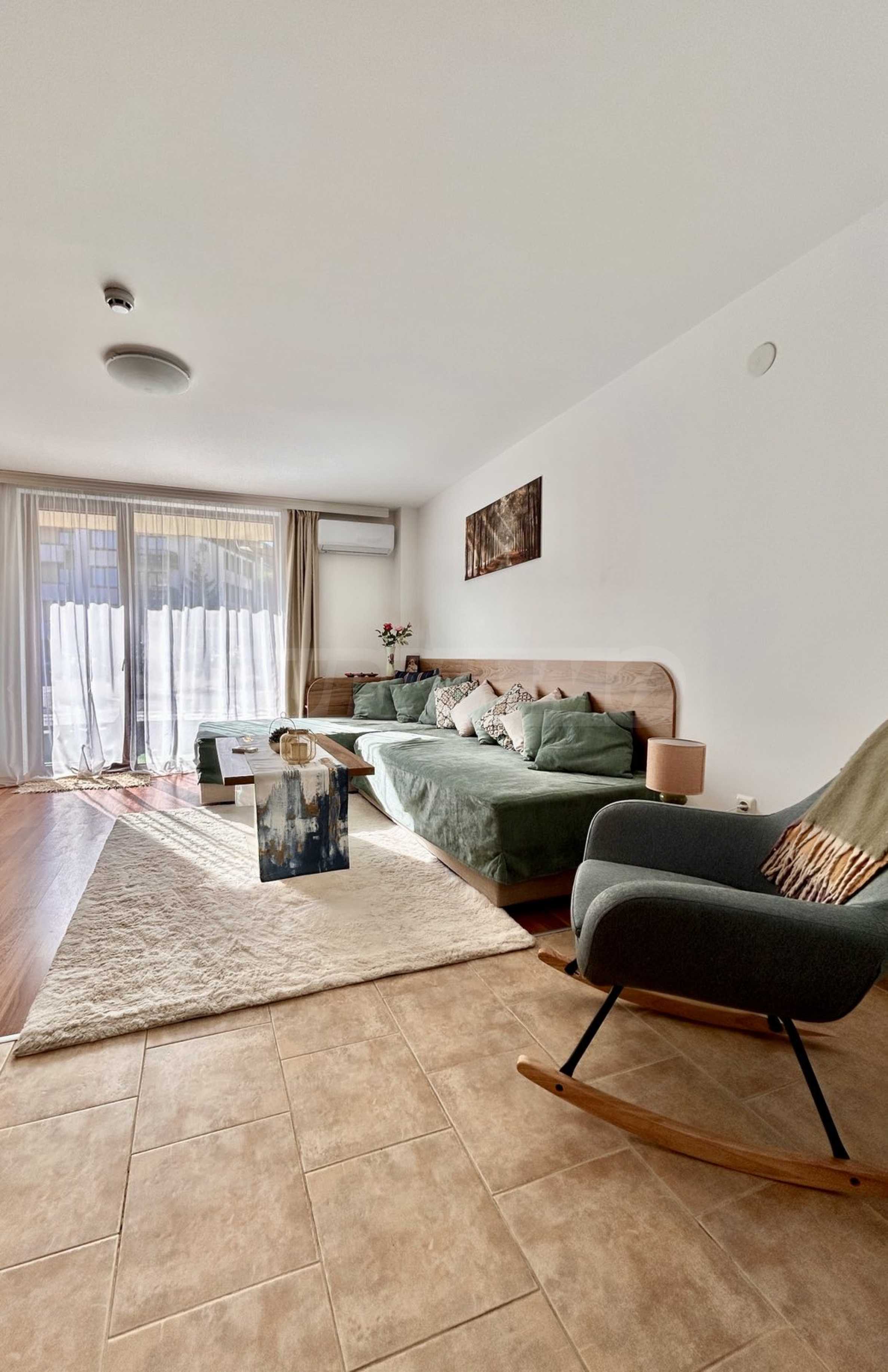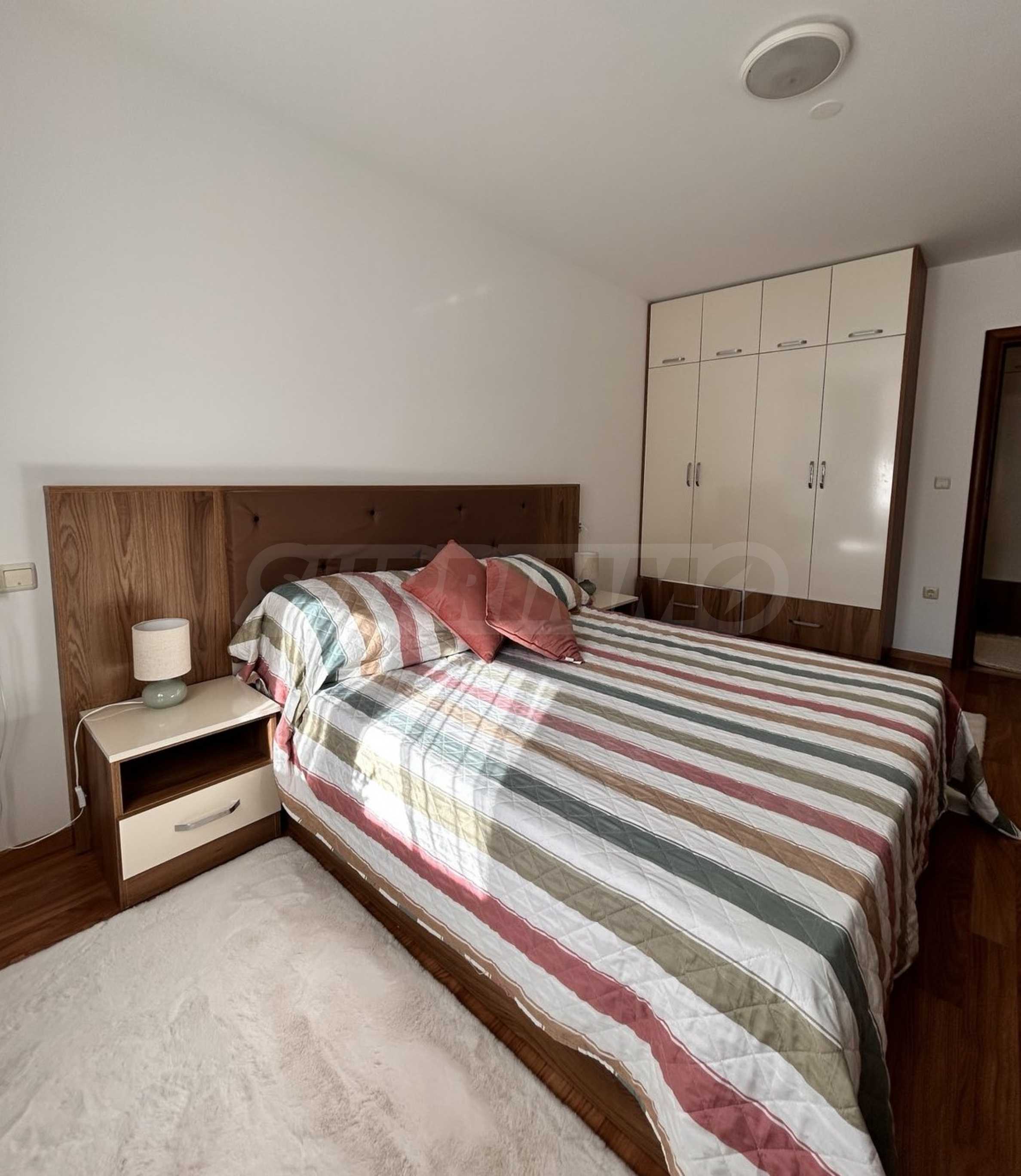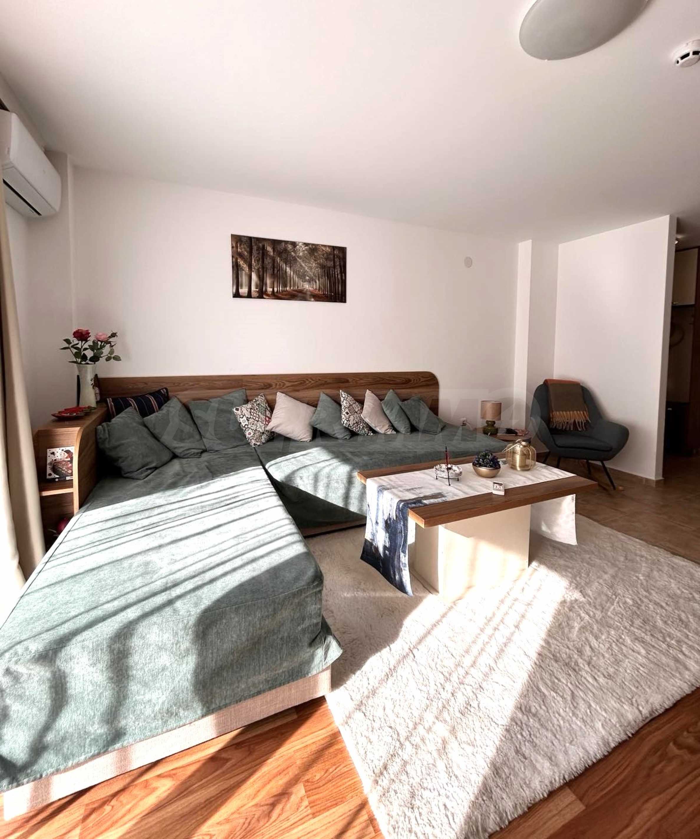 We present a modernly furnished one-bedroom apartment 600 m from the ski area and the lift in a year-round complex in Bansko.