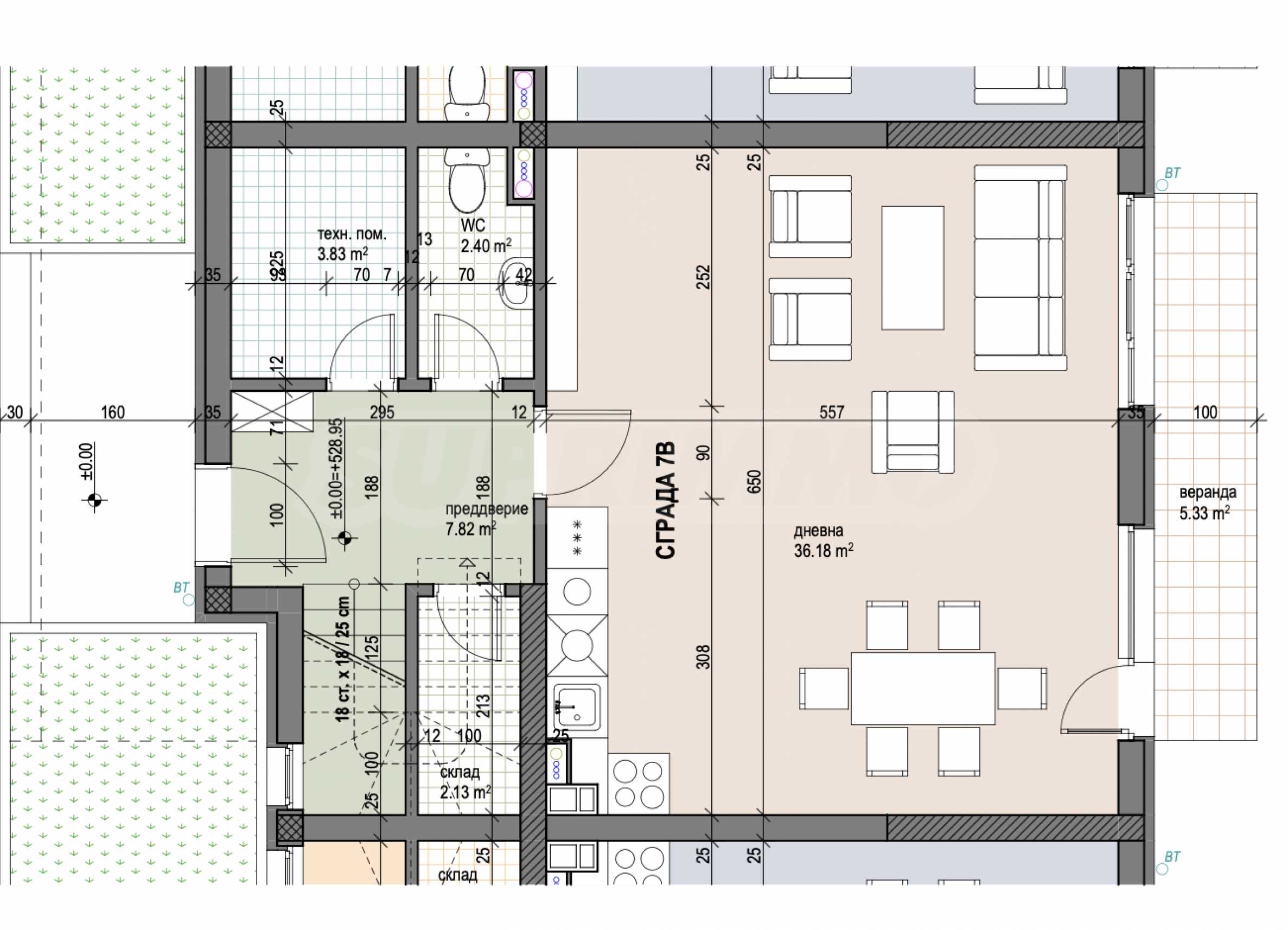 The houses are designed and built with modern construction technologies and materials, guaranteeing sustainability, energy efficiency and comfort. The monolithic reinforced concrete structure, high-quality masonry, thermal insulation systems and modern facade solutions create a feeling of stability and stylish vision. Quality joinery is provided, engineering installations are built, preparation for modern heating solutions and air conditioning in each room is provided. The interior spaces are left according to the Bulgarian Civil Code, which gives the future owners the opportunity to fully realize their personal interior project.