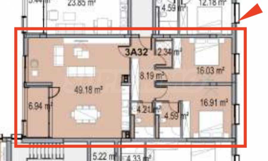 A two-bedroom apartment with a living room of almost 50 sq.m in Royal Garden 2 – one of the most prestigious residential areas in Plovdiv.