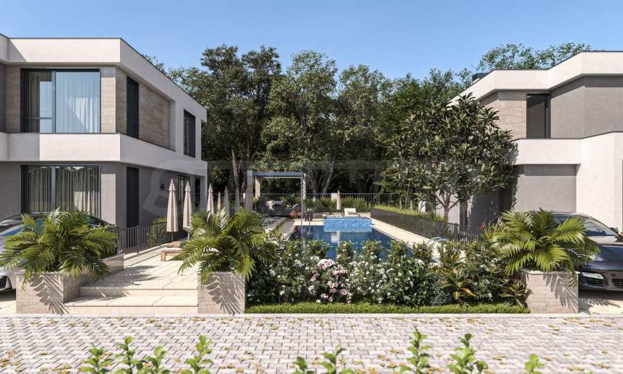 We present for sale a single-family, two-story house, part of a gated complex with amenities, located among greenery and tranquility, between Burgas and Pomorie.