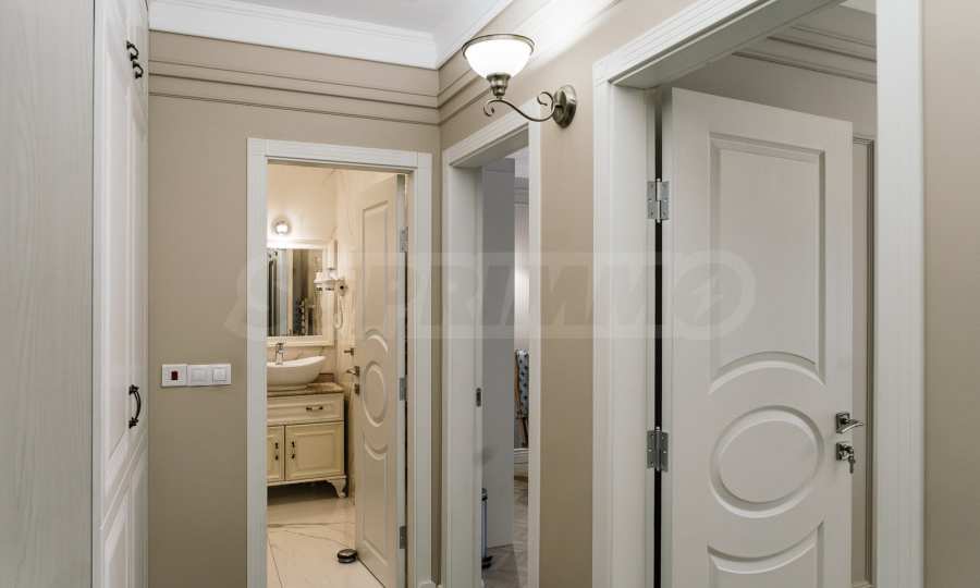 The apartment is located on the 4th floor, facing south and overlooking a quiet courtyard. Its net area is 77.02 sq m, the common areas - 19.98 sq m.