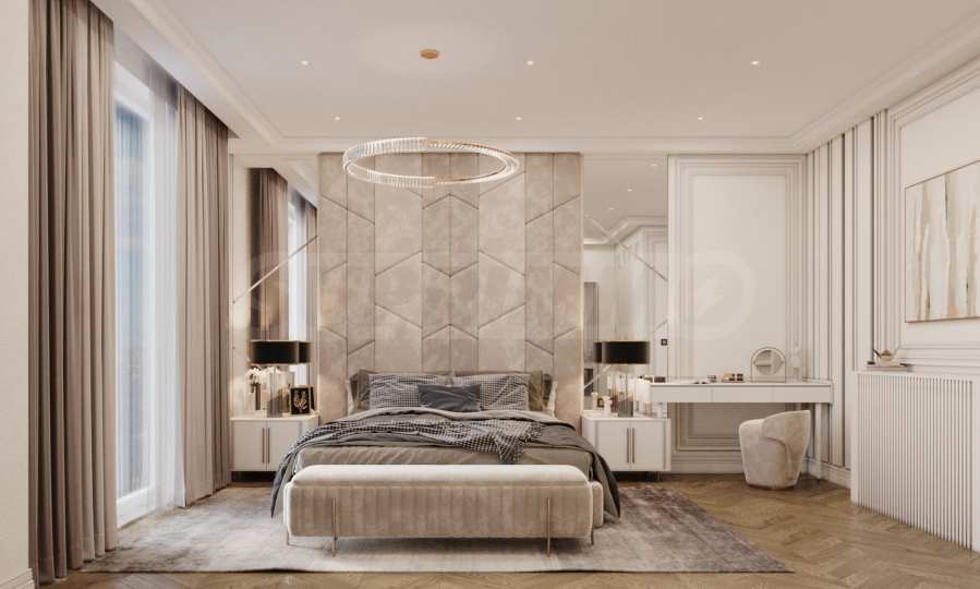 • flooring in the bedrooms – high-class natural parquet (coordinated with the designer);