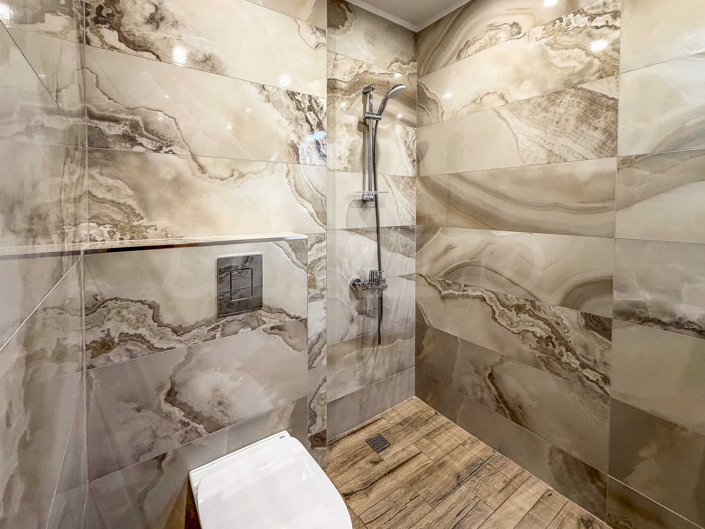 The apartment is spacious, bright and functionally distributed, including a living room with a kitchen and dining area, a cozy bedroom, a bathroom with a toilet and an entrance hall. The exposure is entirely southern. The interior is executed in a refined and modern style, with quality furniture, selected materials and a harmonious color palette, creating a feeling of coziness and elegance.