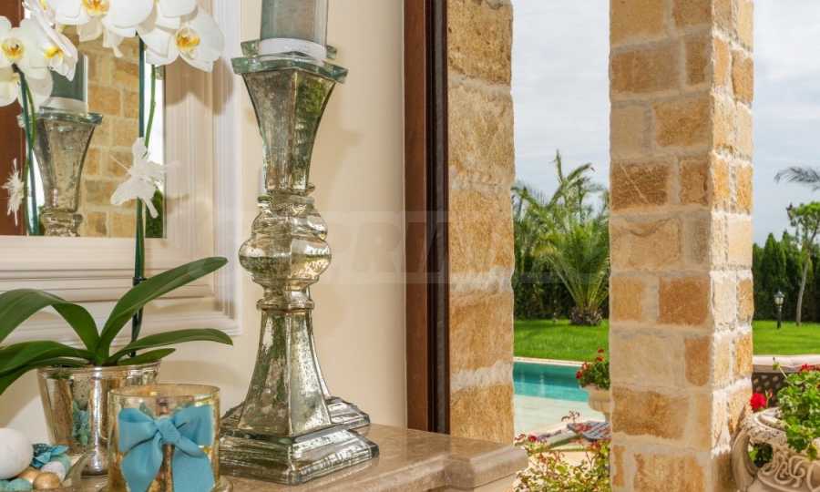 • natural Pyrgos Light marble, designer stained glass windows and furniture according to individual design;