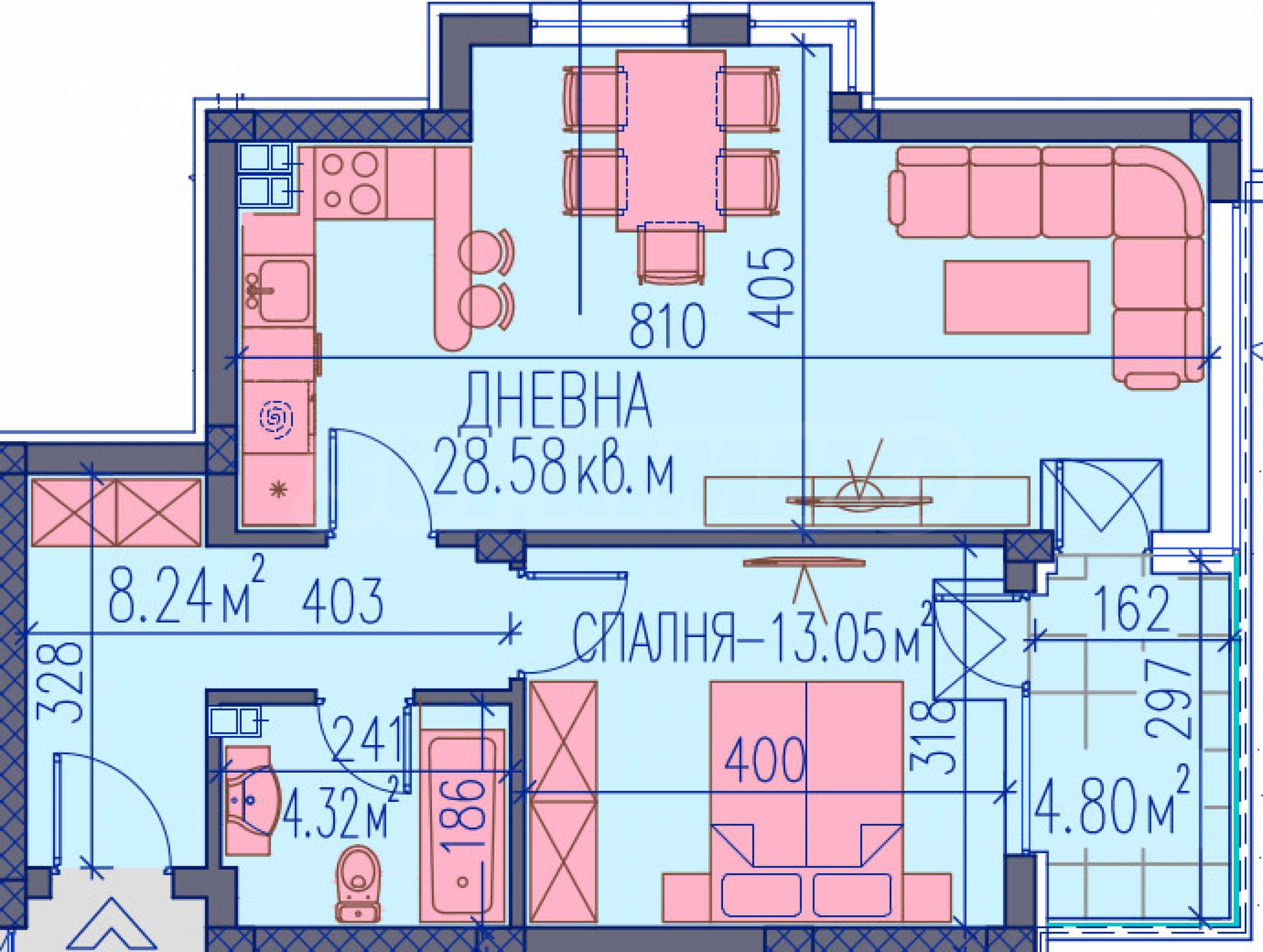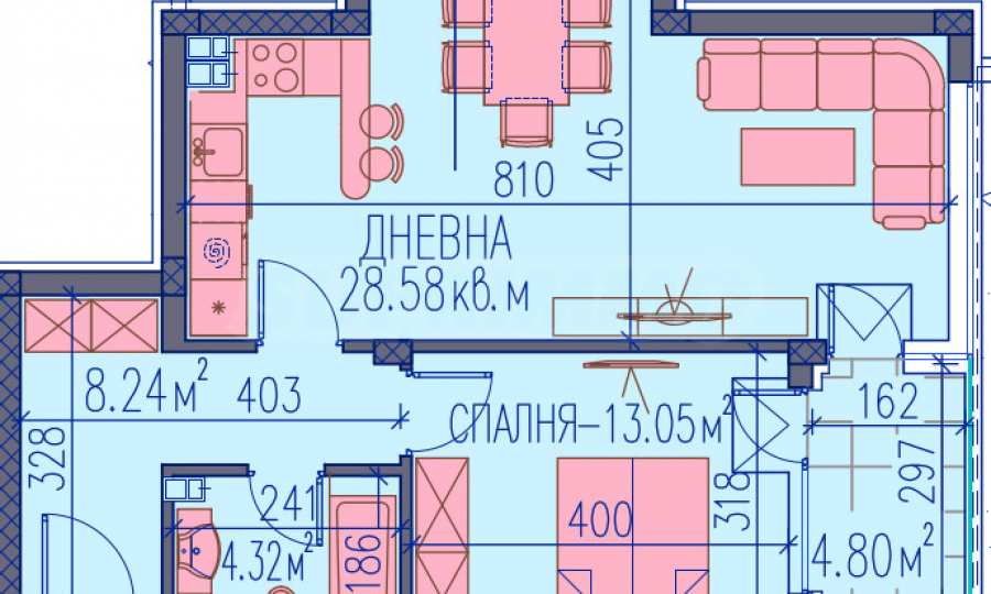 The complex will be luxuriously designed, which guarantees your relaxation and peace of mind. It consists of 4 residential buildings with 7 entrances and will have an elegant courtyard with lots of greenery, which will be used only by the residents. On the ground floor there are commercial premises and underground and outdoor parking spaces are provided, which can be purchased additionally. The apartments are spacious and with one or two bedrooms, providing comfortable and modern housing for you and your family.