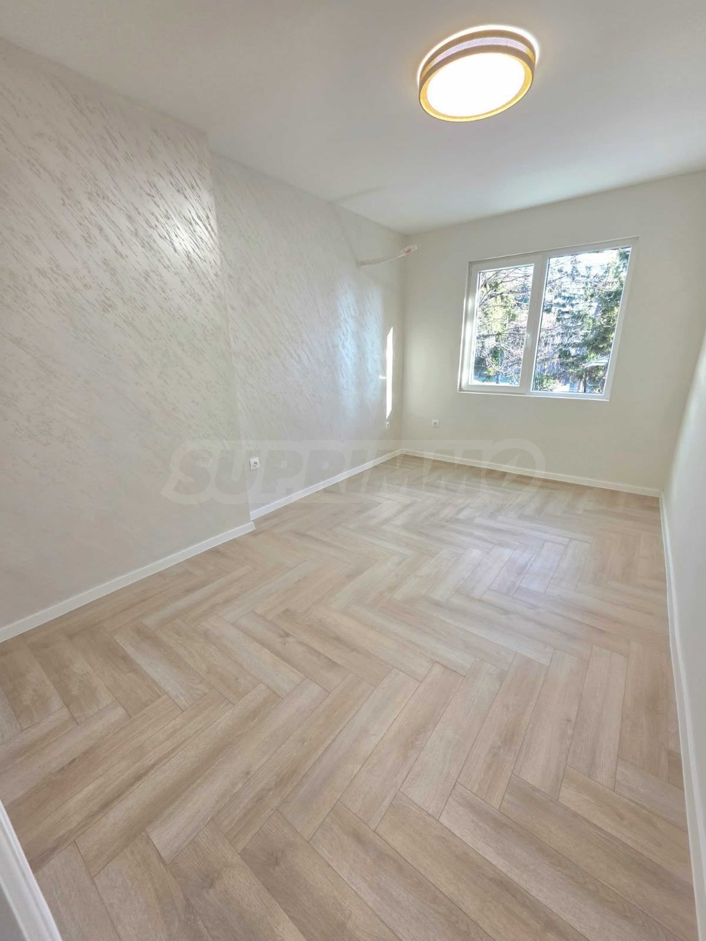 The apartment has been completely renovated and is being sold in a "turnkey/unfurnished" state of completion.