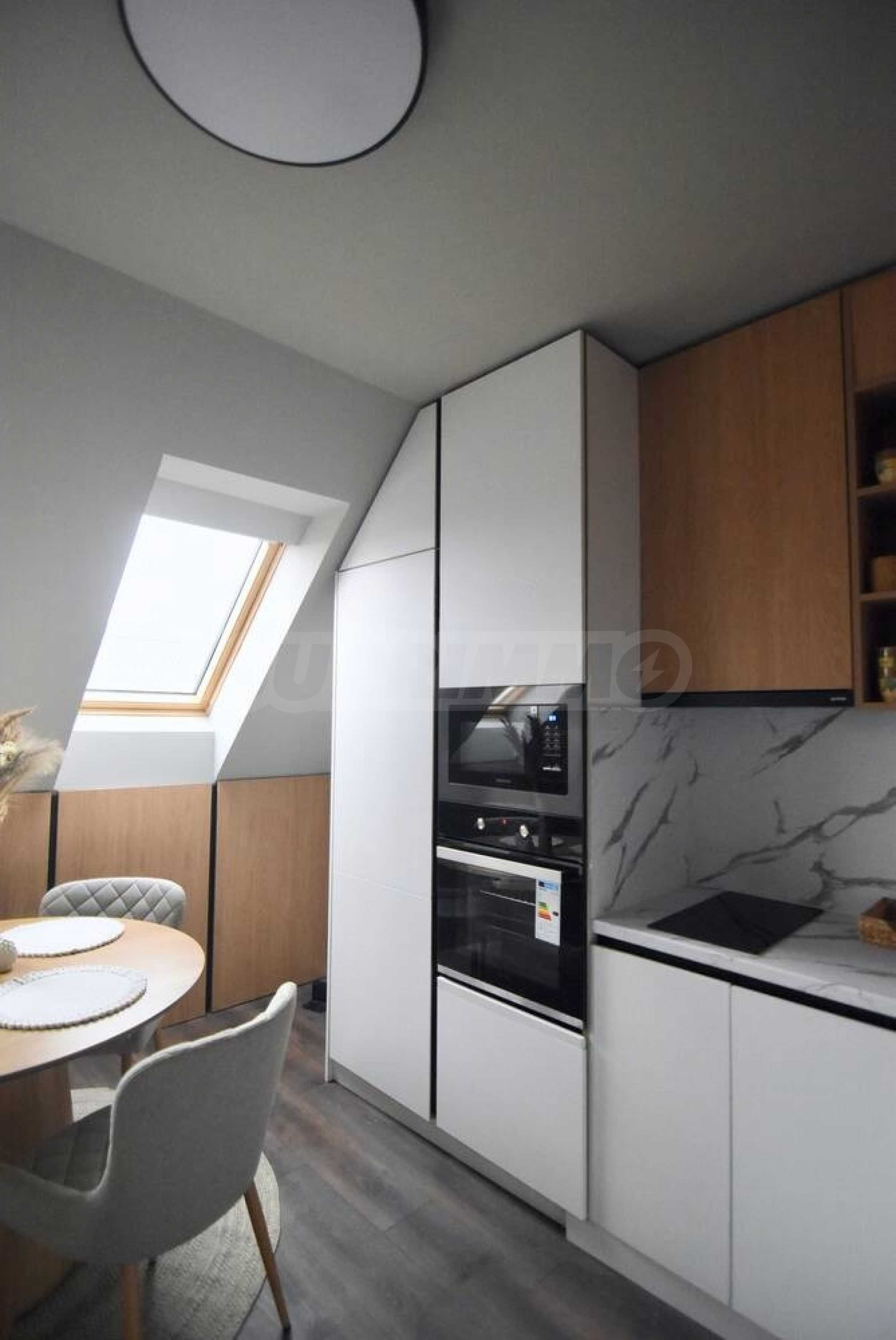 We present a stylishly furnished one-bedroom apartment with a parking space included in the price , for rent in a modern new building with excellently maintained common areas, near the "K. Velichkov" metro station.