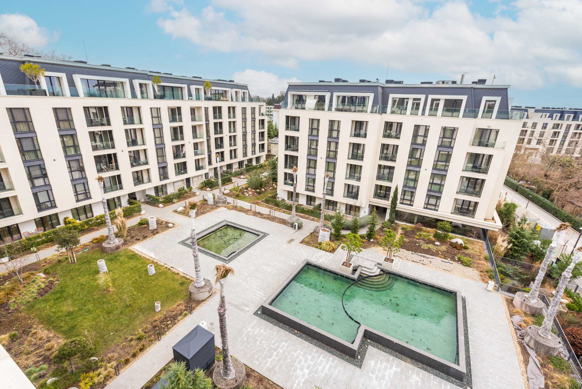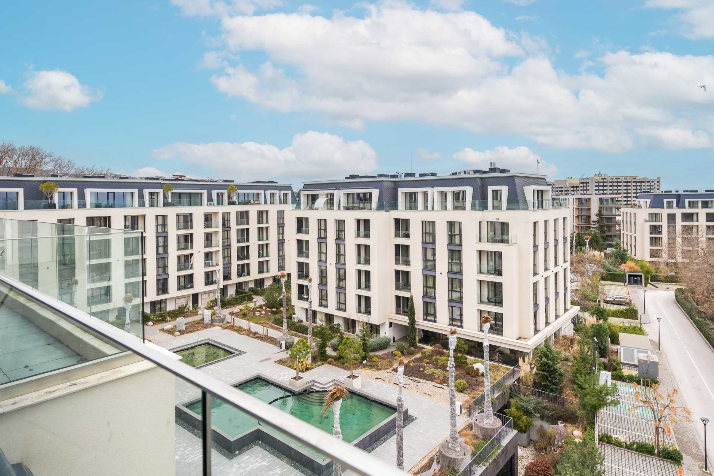 The complex consists of four buildings, with a richly landscaped territory. It is a gated community with controlled access and video surveillance, guaranteeing peace and security for all residents. It has two outdoor swimming pools with children's sections, a jacuzzi, a water mirror, a flower garden, outdoor and underground parking with garages and parking spaces. For the convenience of using the pool, an outdoor sanitary facility has been built on the territory. The complex has a SPA center with an indoor heated pool, sauna, steam bath, massage rooms, changing rooms and showers.