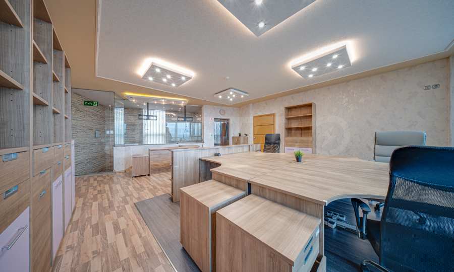 The office impresses with bright and spacious rooms, functional layout and the possibility of different configurations according to the needs of the tenant. Large terraces provide additional space for relaxation and informal meetings, creating a feeling of spaciousness and comfort.