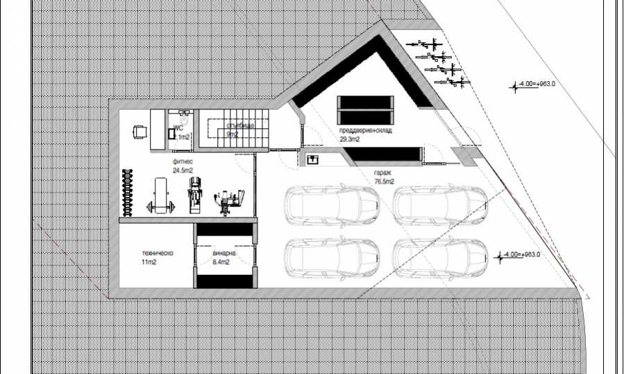 There is a garage for 4 cars with a built-in charging station for electric vehicles - a practical and modern solution that meets the modern lifestyle.