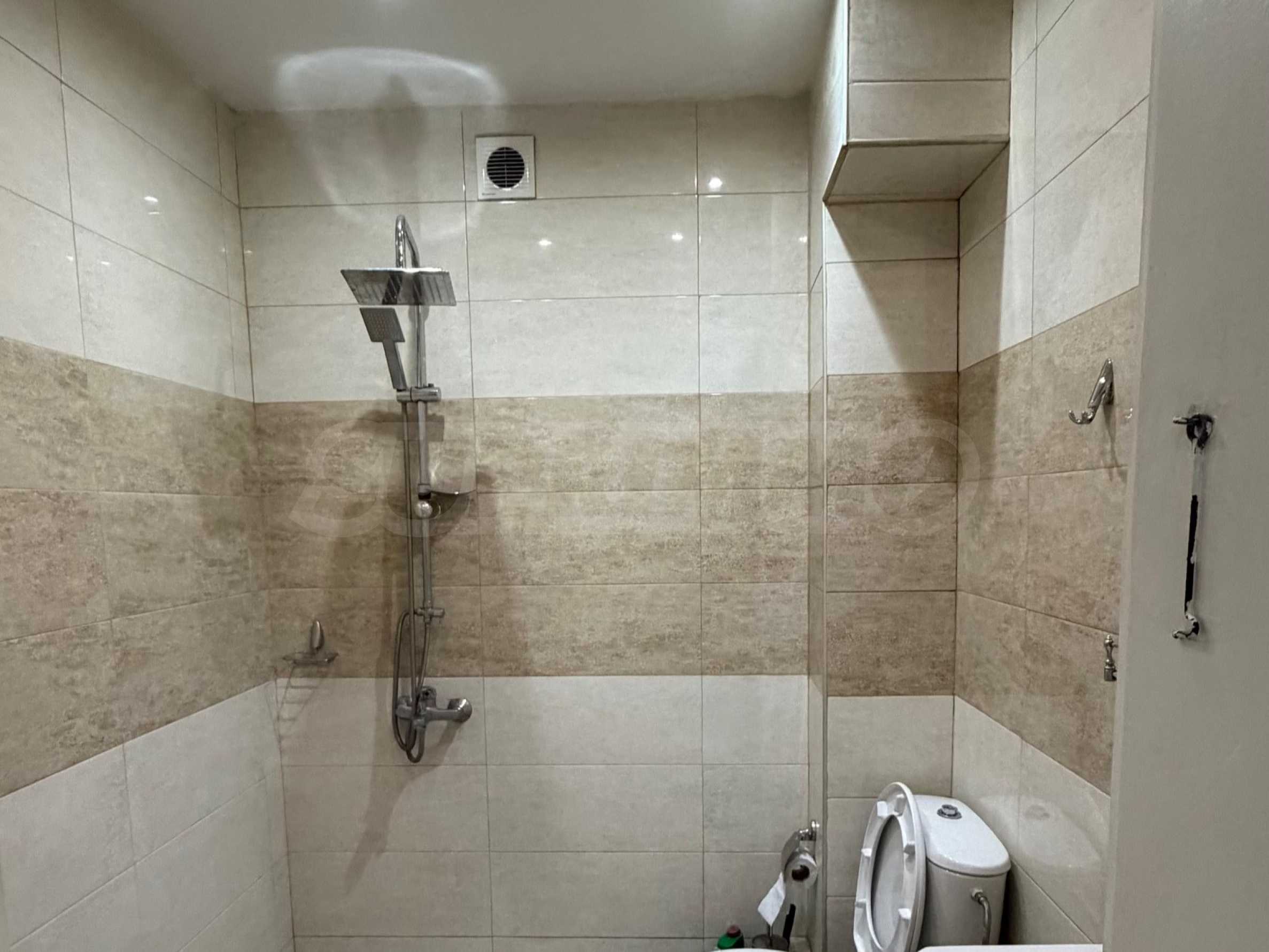 • bathroom with toilet and shower.