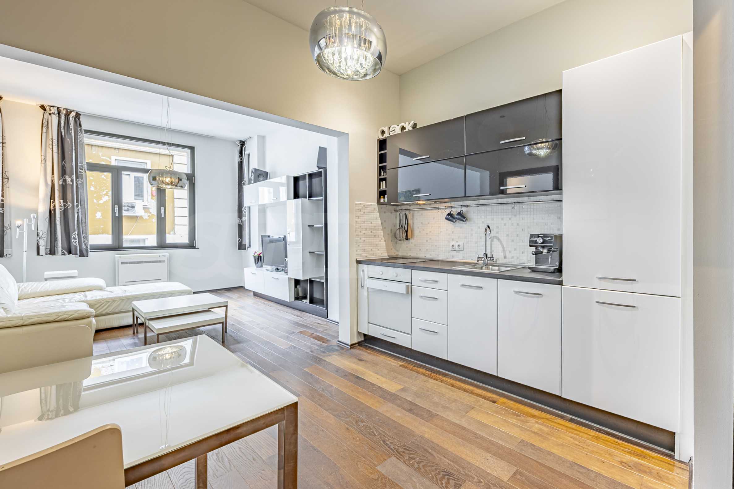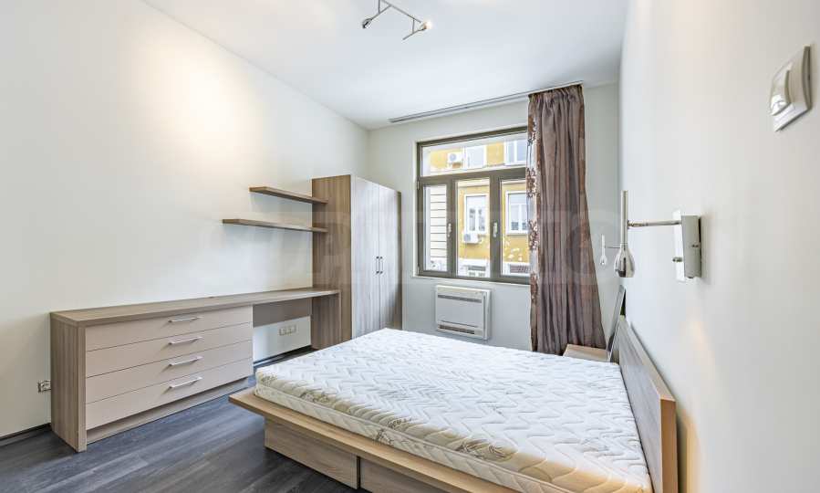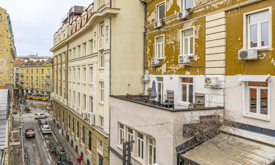 We present a comfortably furnished two-bedroom apartment with an excellent central location - minutes from Vitosha Blvd. and the Courthouse, just 100 m from Garibaldi Square and 300 m from Slaveykov Square. The area offers quick access to public transport, shops, restaurants, cultural sites and all the amenities of the ideal center.