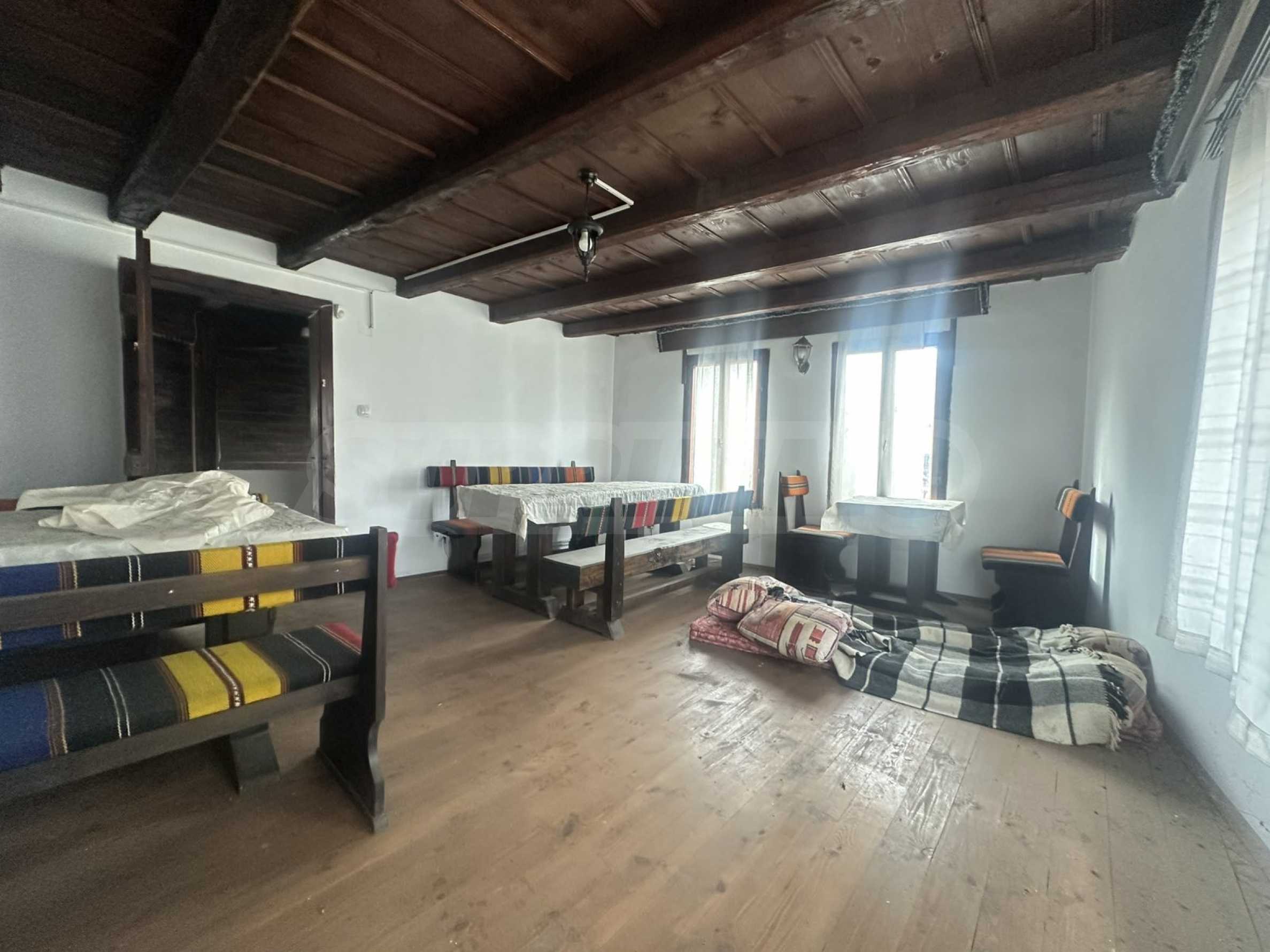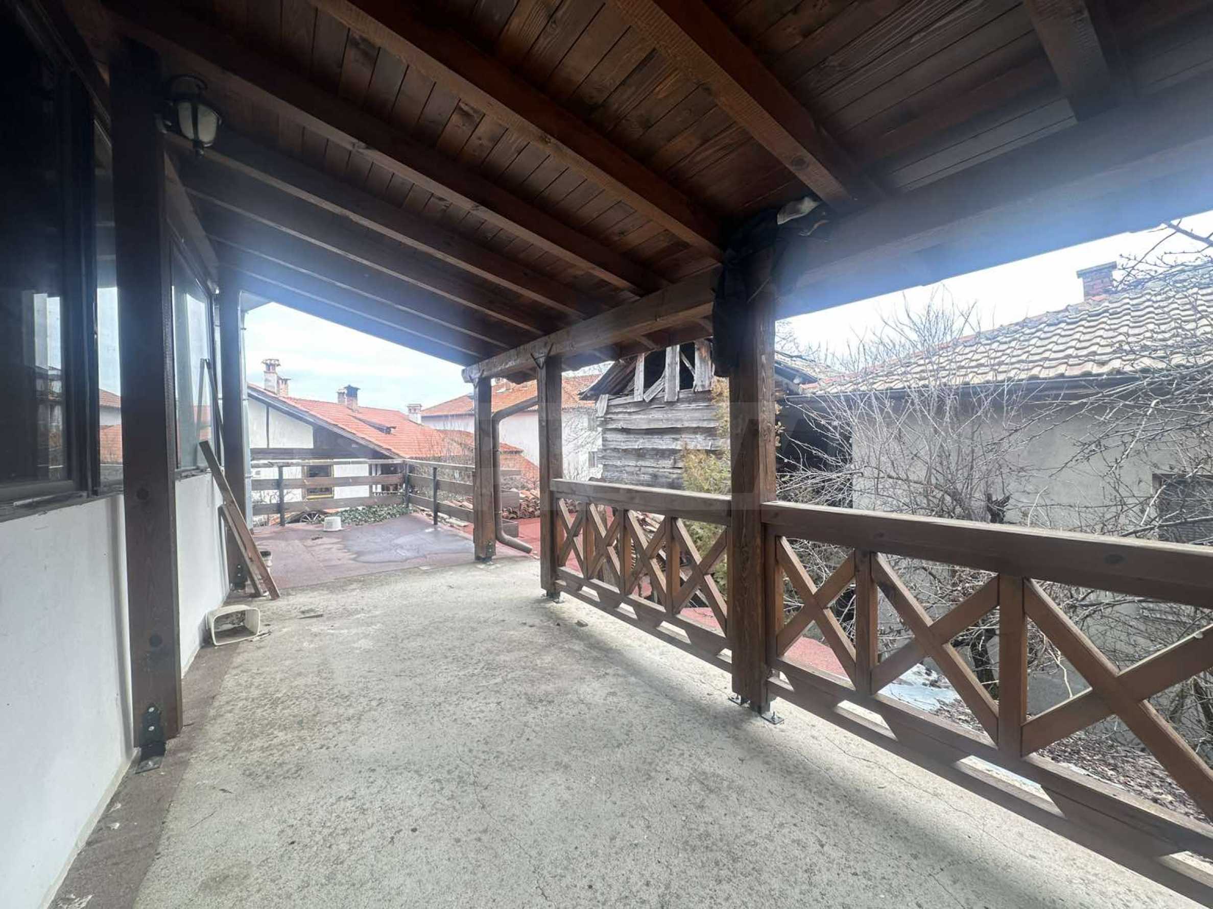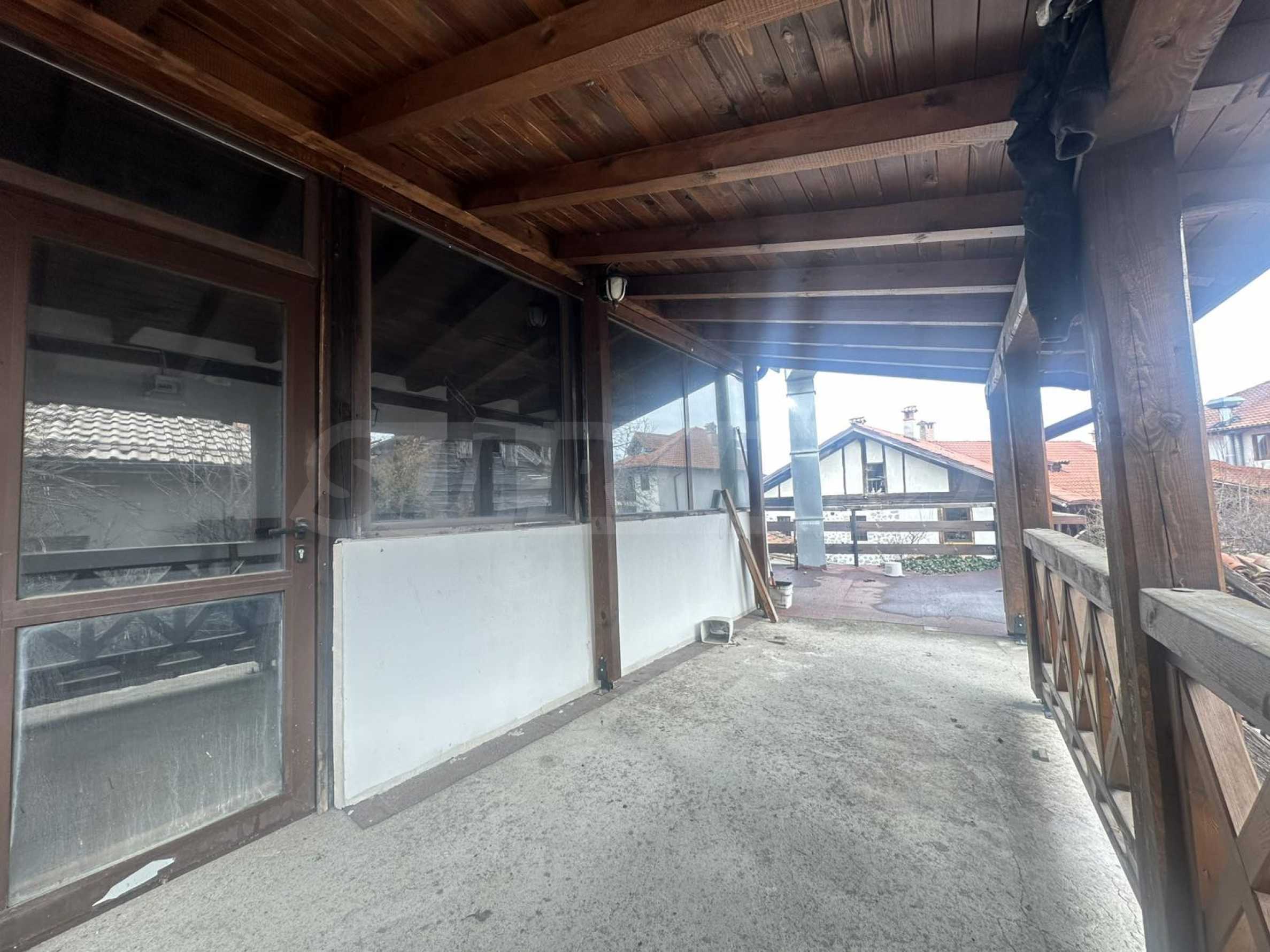 The property is built in the typical style of old Bansko architecture - with a spacious veranda, massive wooden elements and a cozy courtyard, carrying the spirit of the Bulgarian National Revival tradition.