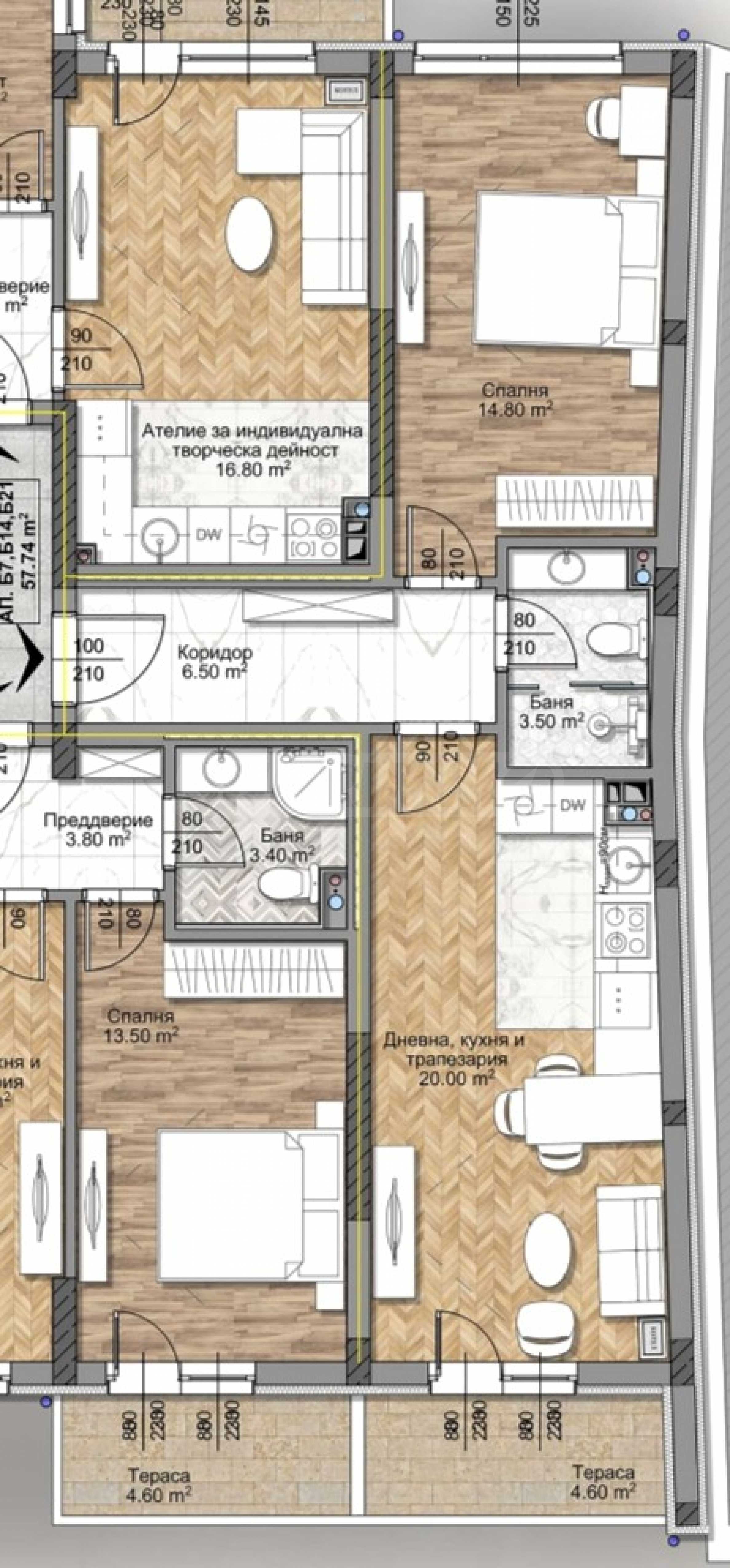 We present an apartment in a newly built residential building located near the New Bulgarian University and the "Mizia" metro station, a modern residential project that promises to become an attractive place to live for people of different ages and with different needs.