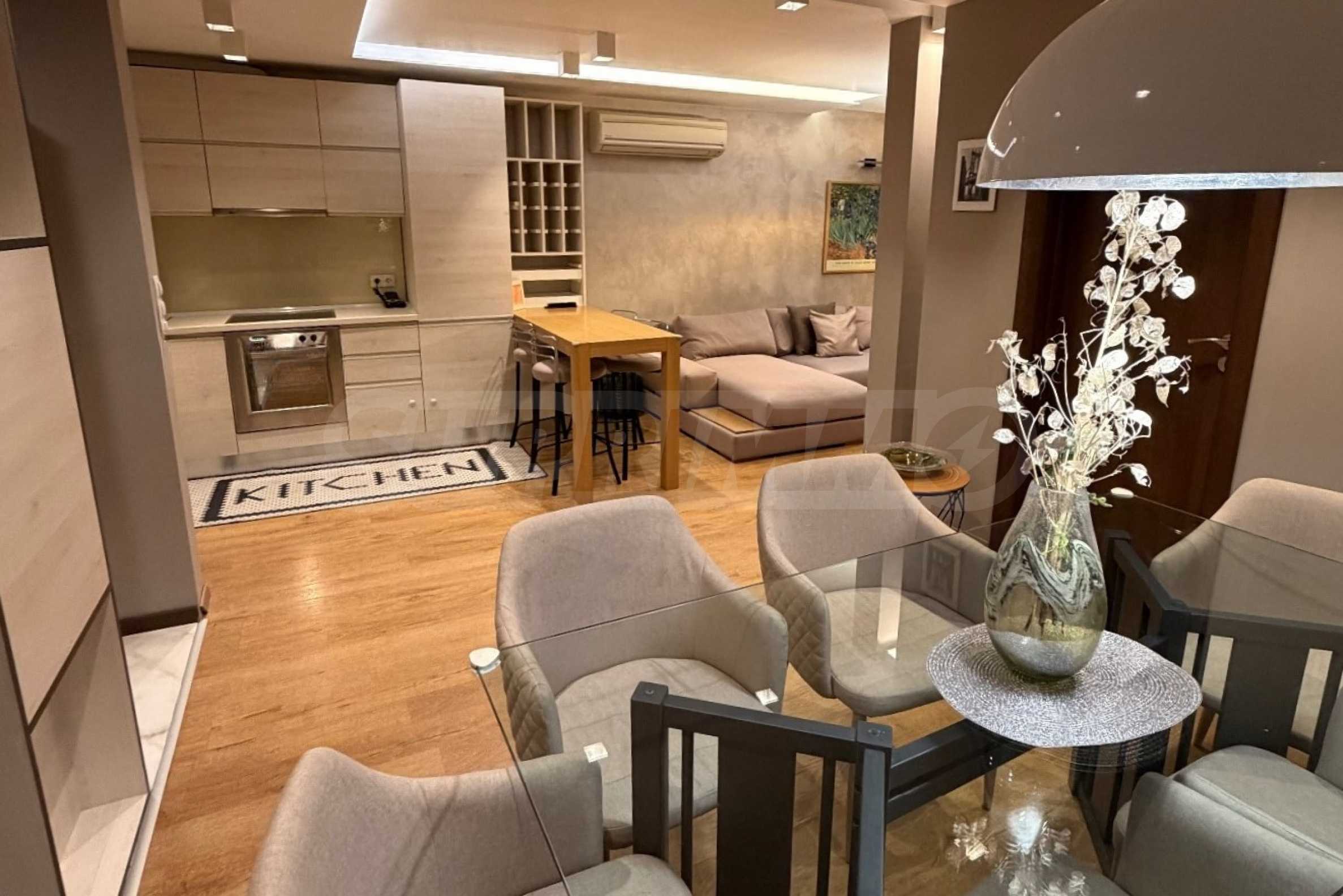 We present a spacious and well-maintained apartment with an area of about 90 sq m, for rent in one of the most prestigious and preferred neighborhoods of Sofia - "Iztok". The property is built according to a designer project and impresses with a stylish look, quality materials and coziness.
