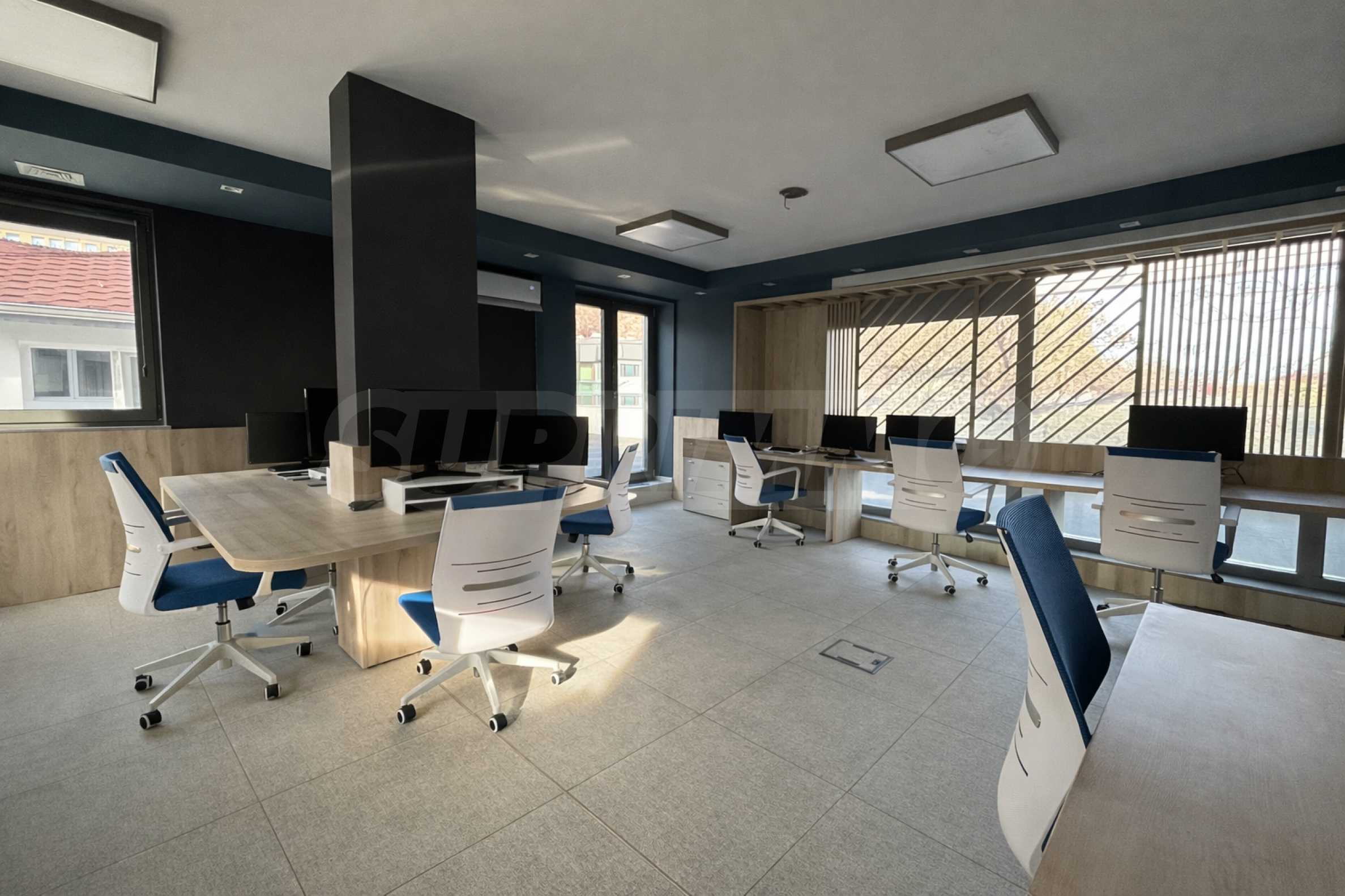 We present for rent an impressive office floor (114.3 sq.m) in the ideal center of Plovdiv, in a new building within walking distance of the Main Street, the Old Town and the Ancient Theater.