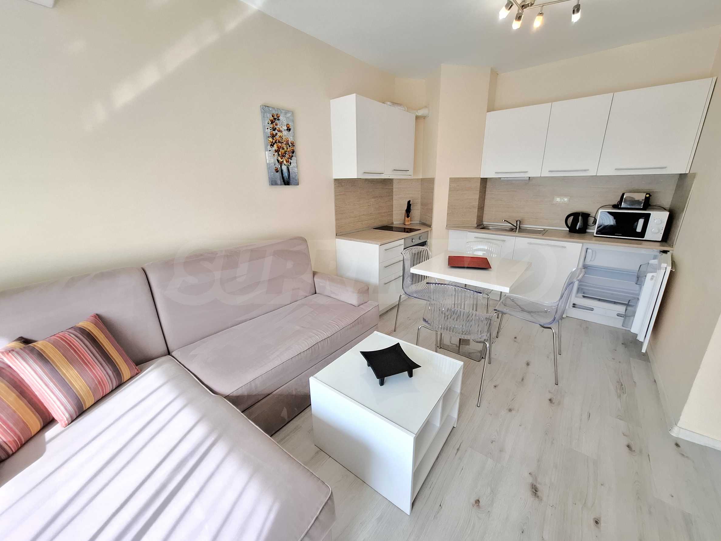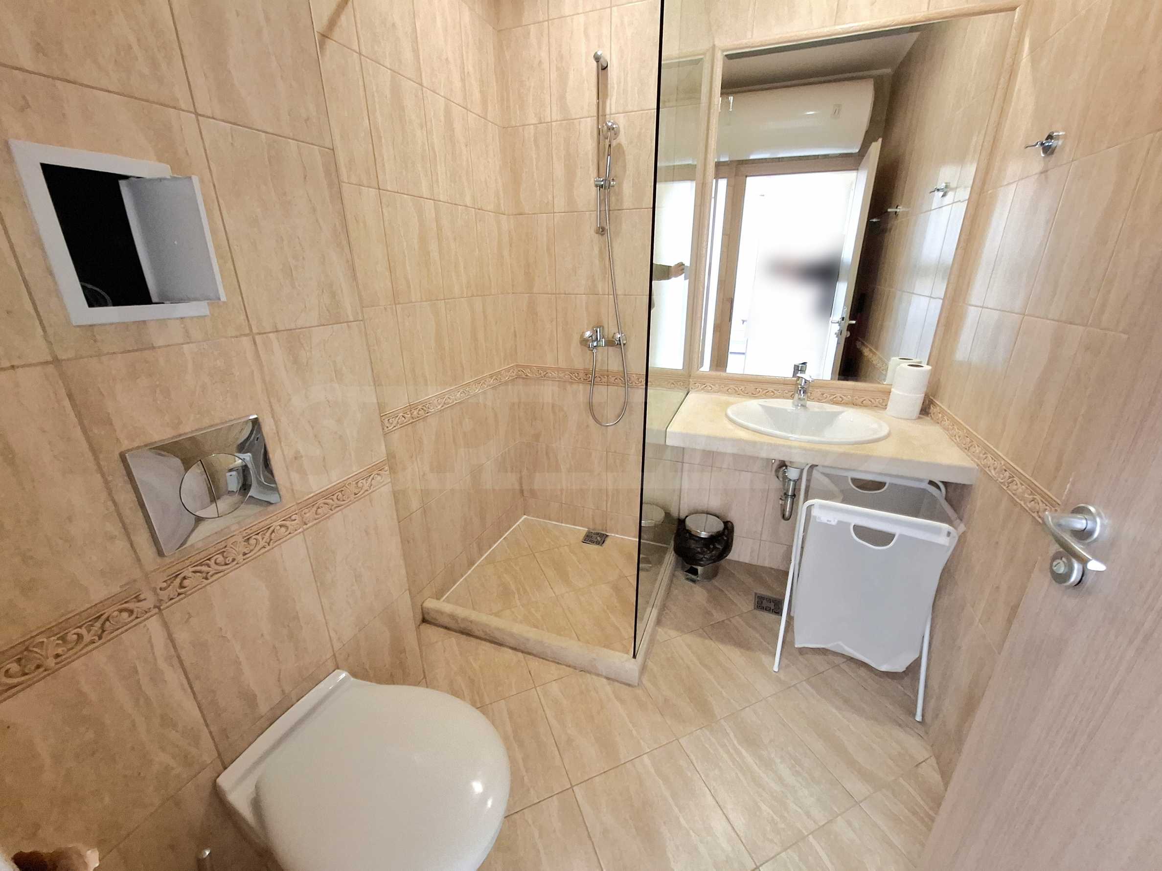 We present a spacious and bright one-bedroom apartment for rent in an elite gated complex just meters from the sea, in a quiet and green part of the Asparuhovo region. An excellent combination of tranquility, fresh air and sea breeze, with a convenient location 300 meters from a large supermarket and 20 meters from the beach.