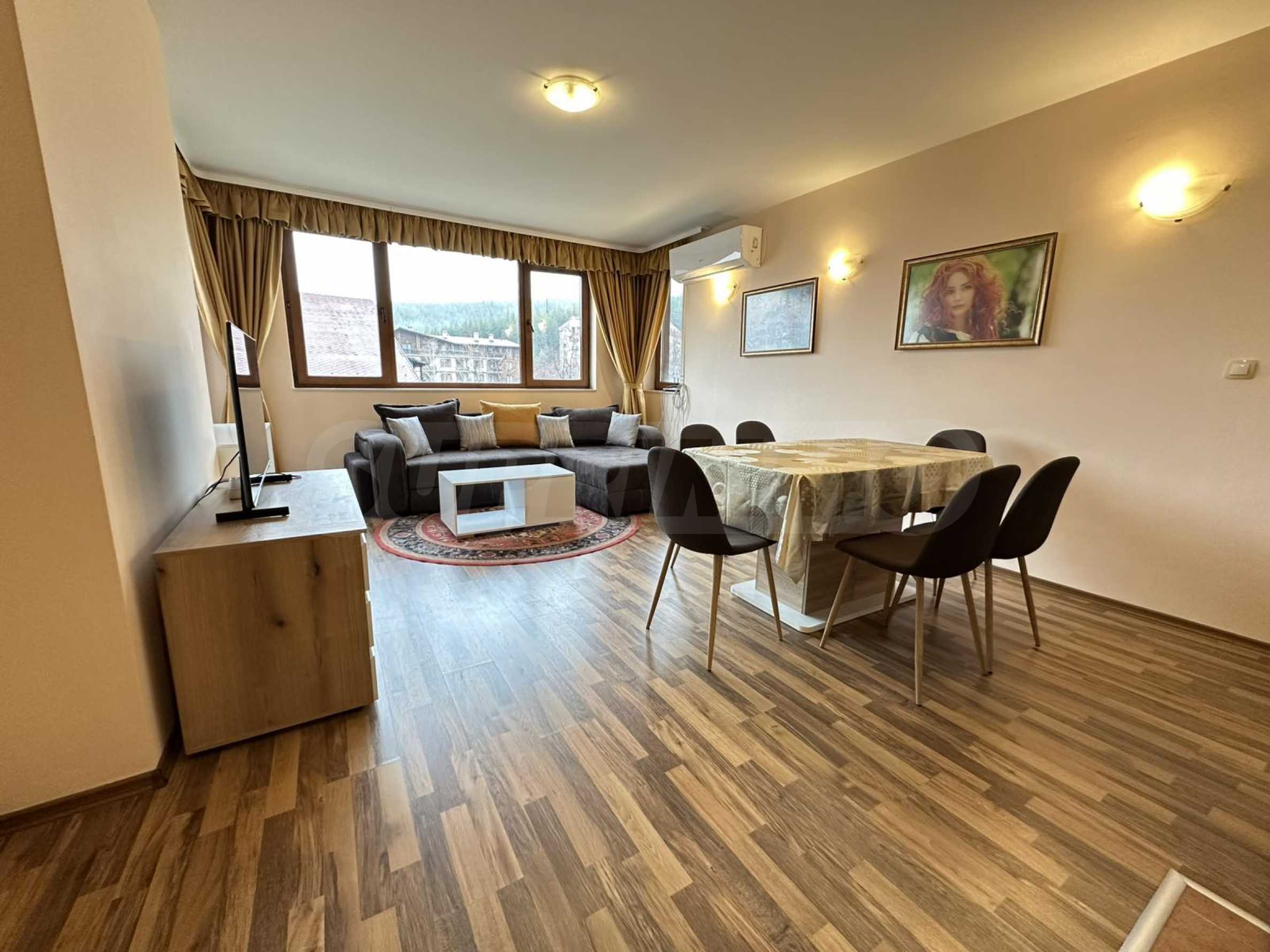 We present a fully renovated and furnished one-bedroom apartment for rent in the Elite Lodge residential building in Bansko.