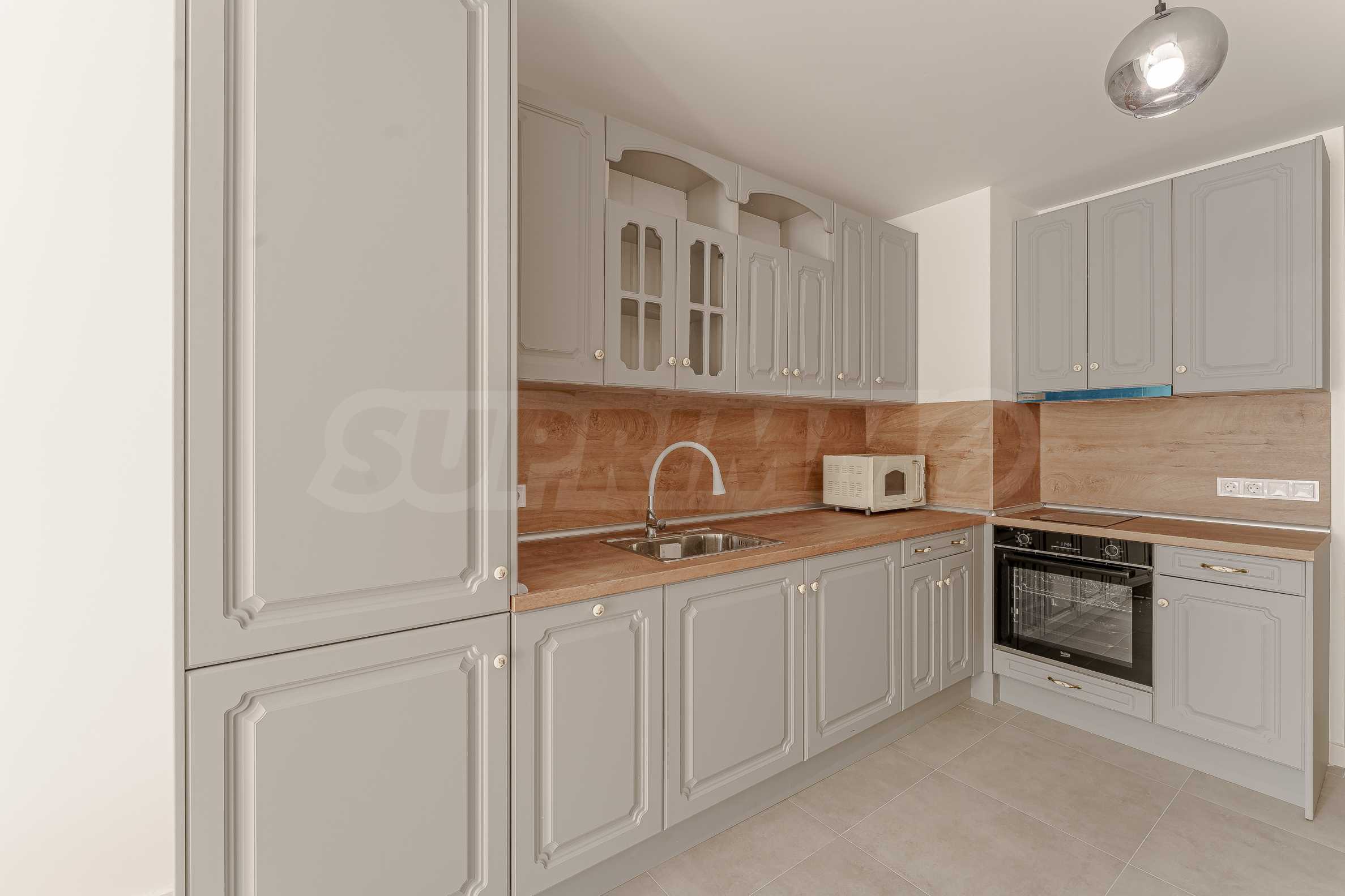 The kitchen is fully equipped with high-end built-in appliances - dishwasher, washing machine, microwave oven and all necessary household appliances.