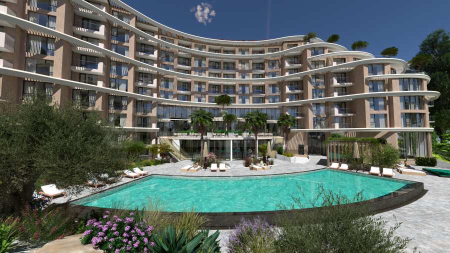 It consists of two buildings with beautiful sea views, indoor parking, a richly landscaped park area, an outdoor pool, a SPA and medical center with an indoor pool and fitness center, and a reception - so the future owners will receive their full amenities, coziness, and comfort of living.