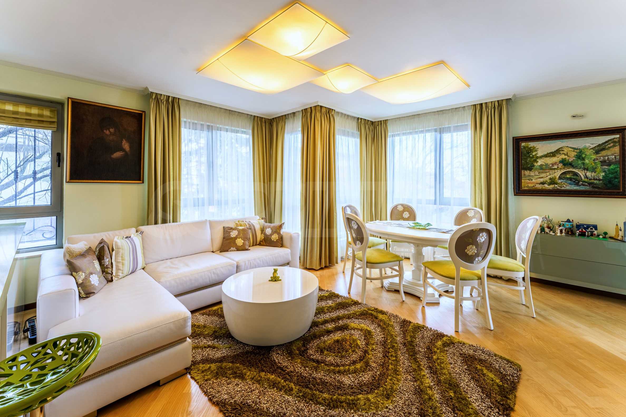 We offer a stylish apartment, realized according to an individual interior design, located in one of the most preferred and prestigious areas at the foot of Vitosha Mountain. The location combines silence, fresh air and quick access to the city, just a 5-minute walk from the forest, with the opportunity for walks and sports in nature.