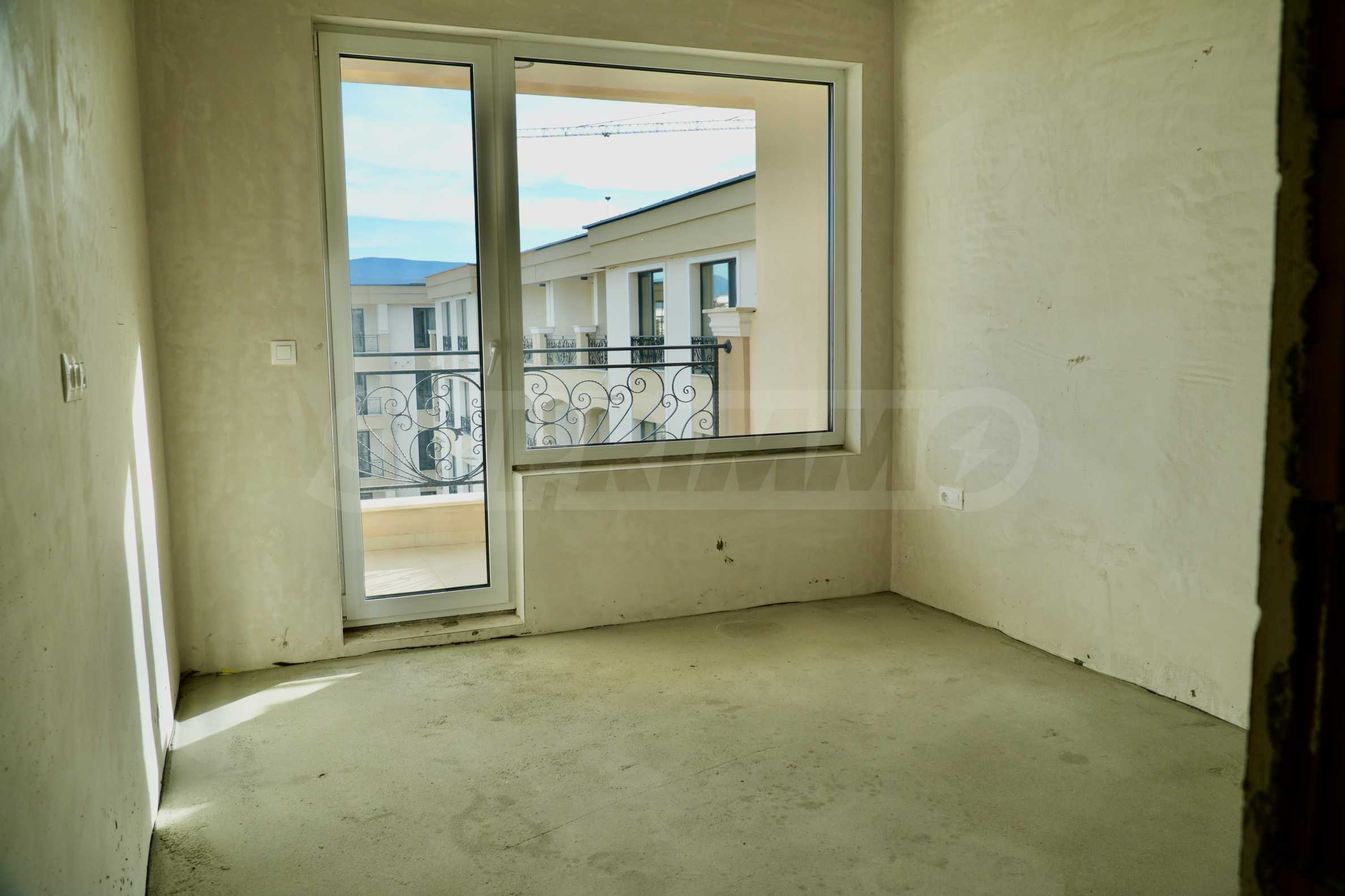 The apartment is being sold in a state of completion according to Bulgarian Construction Standards, with plaster and screed.