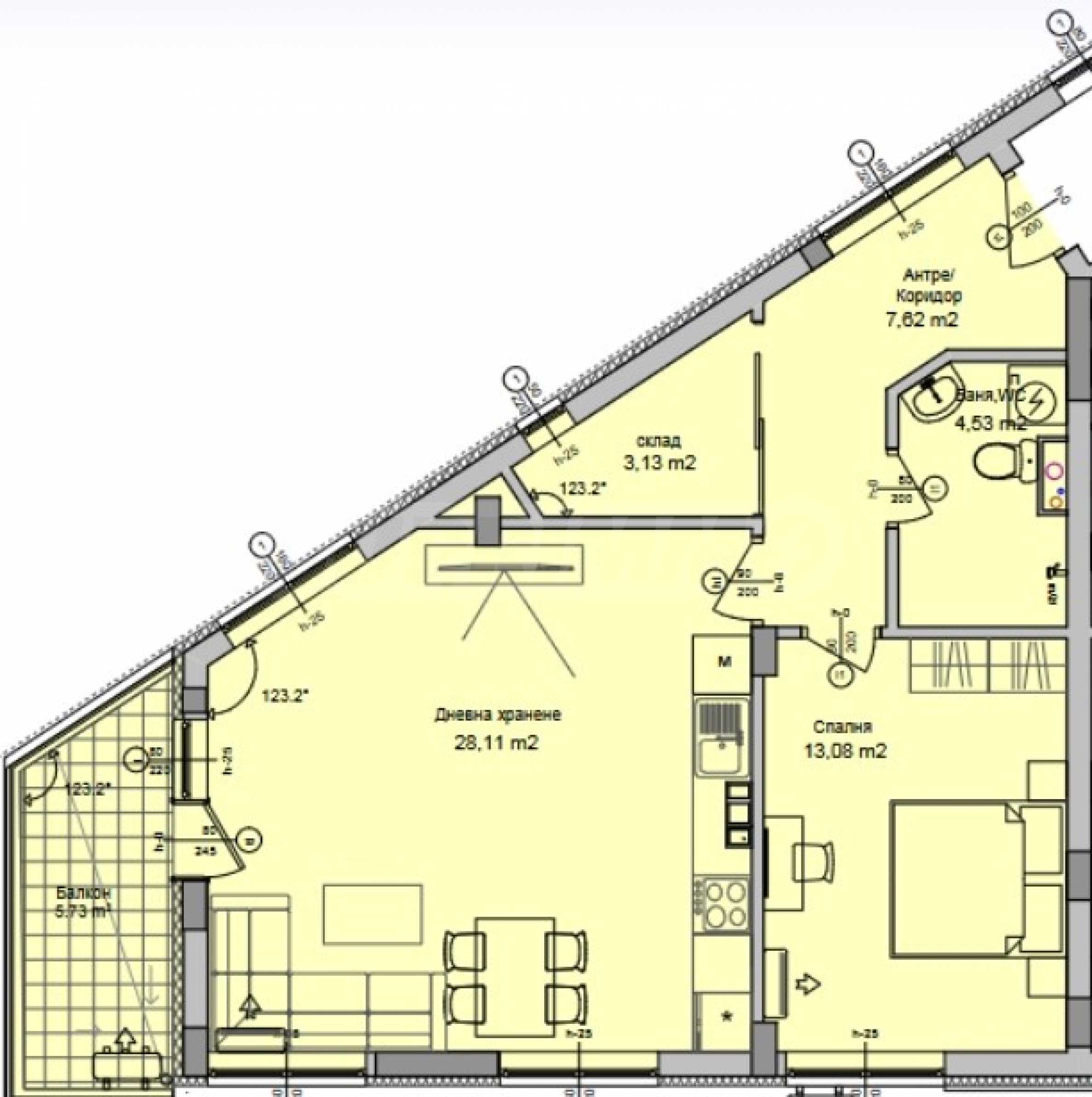 The apartment is being let in a state of completion according to Bulgarian Construction Standards, with plaster and screed.