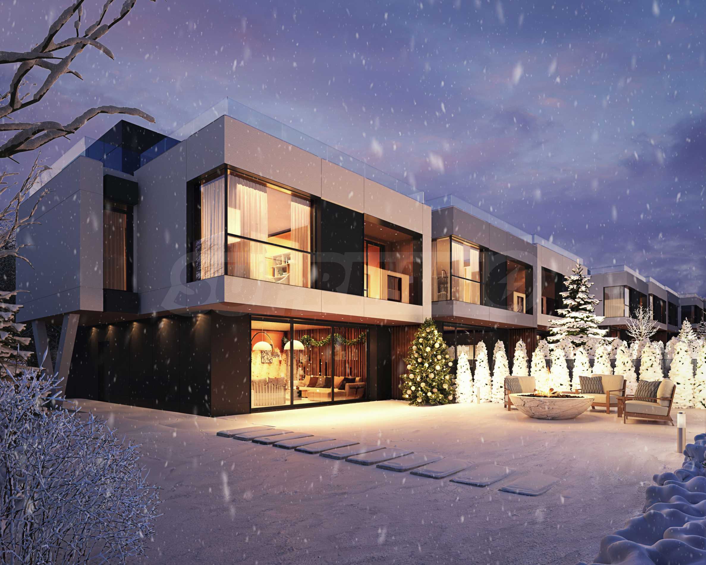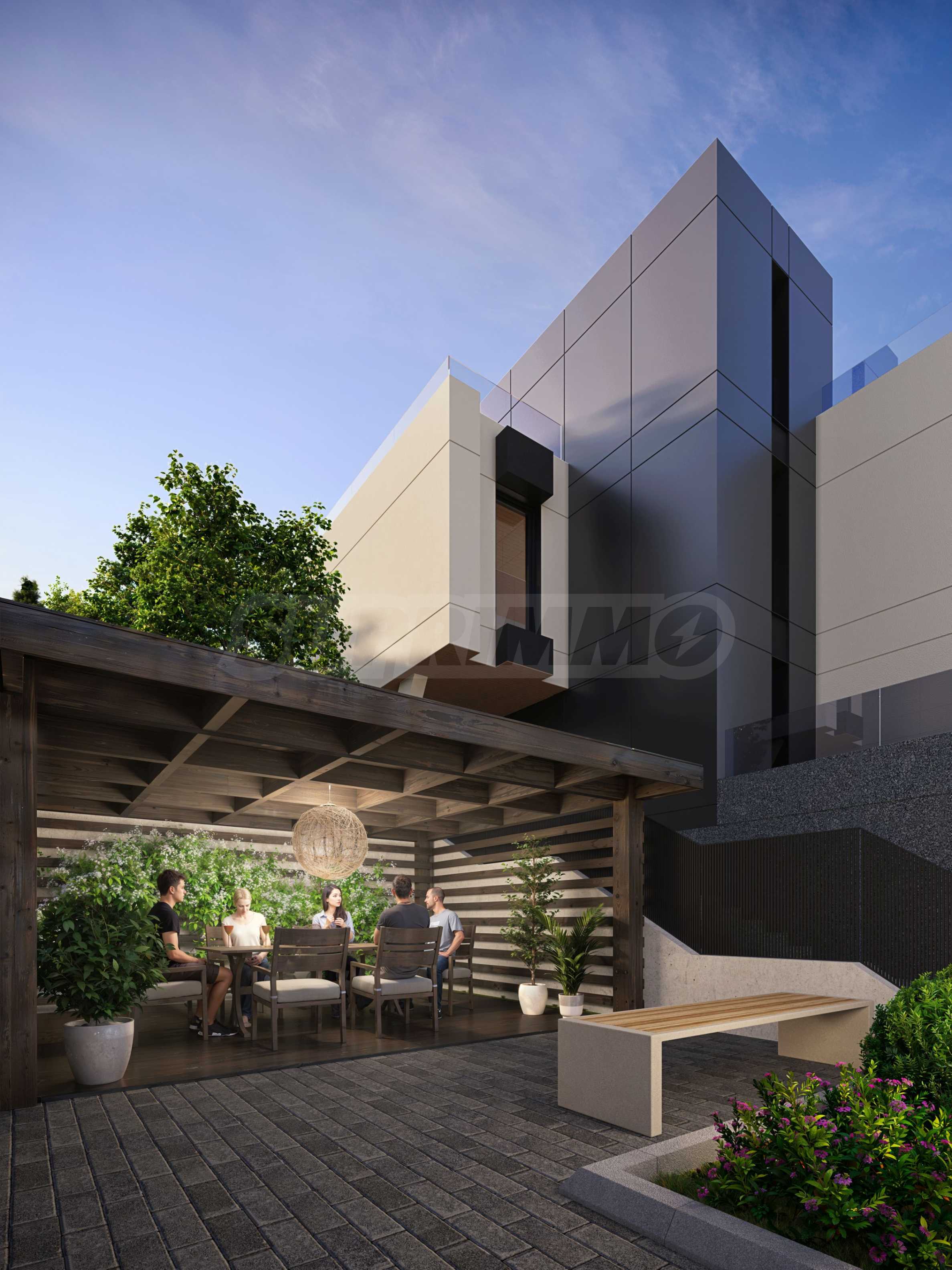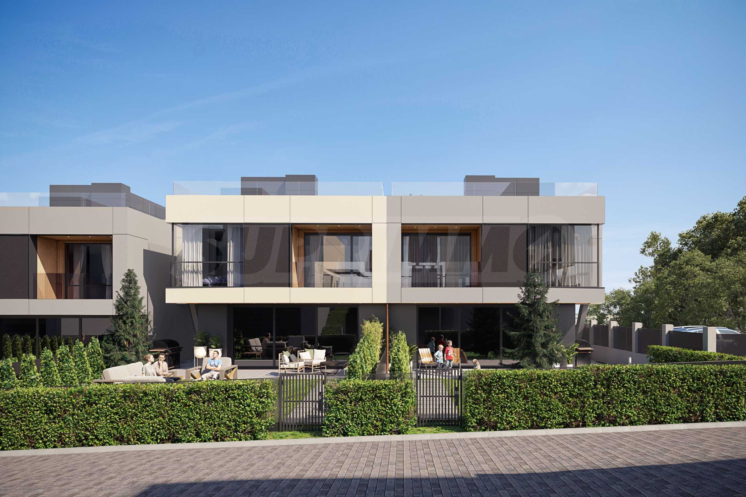 We present for sale a new, modern two-story house No. 1, part of an impressive complex of 20 energy-efficient houses in the village of Bistritsa, just 25 minutes by car from the center of the capital. The complex is located in a convenient and picturesque location, just 13 minutes from the Business Park metro station and in close proximity to a public transport stop. It provides quick access to the Ring Road, IKEA and Ring Mall (14 min), as well as to natural and sports destinations such as Lake Pancharevo (13 min), Simeonovo lift and the Borovets ski resort, located about an hour away.