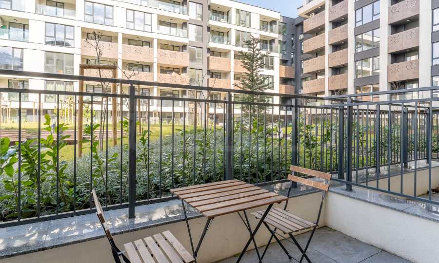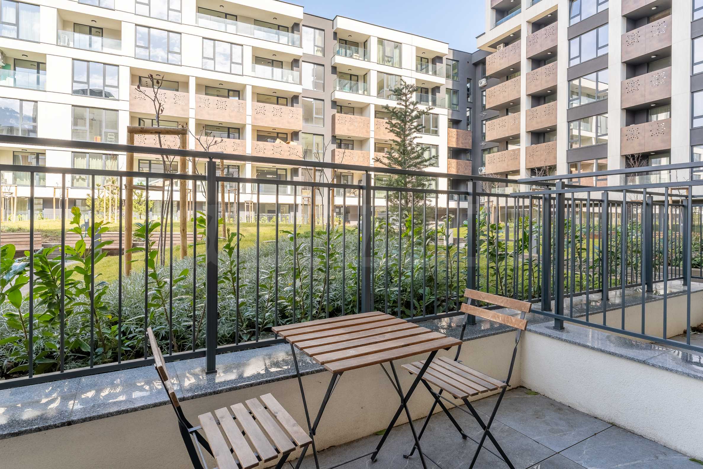 - Wide terraces, revealing a peaceful view of the beautifully landscaped courtyard of the complex