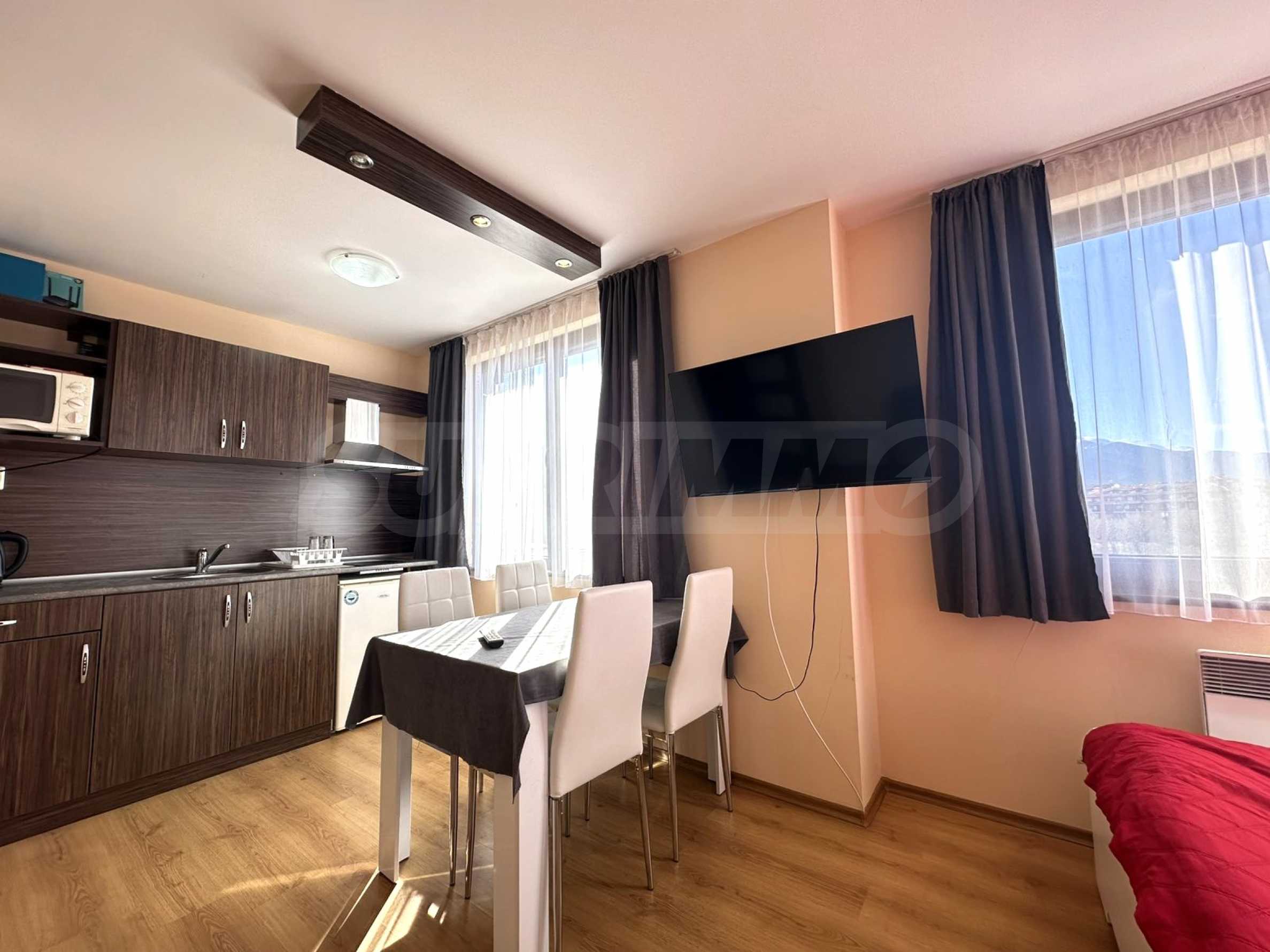 Furnished studio in a hotel complex located at the foot of Pirin Mountain, just a few minutes from the gondola lift and the ski slopes of Bansko.
