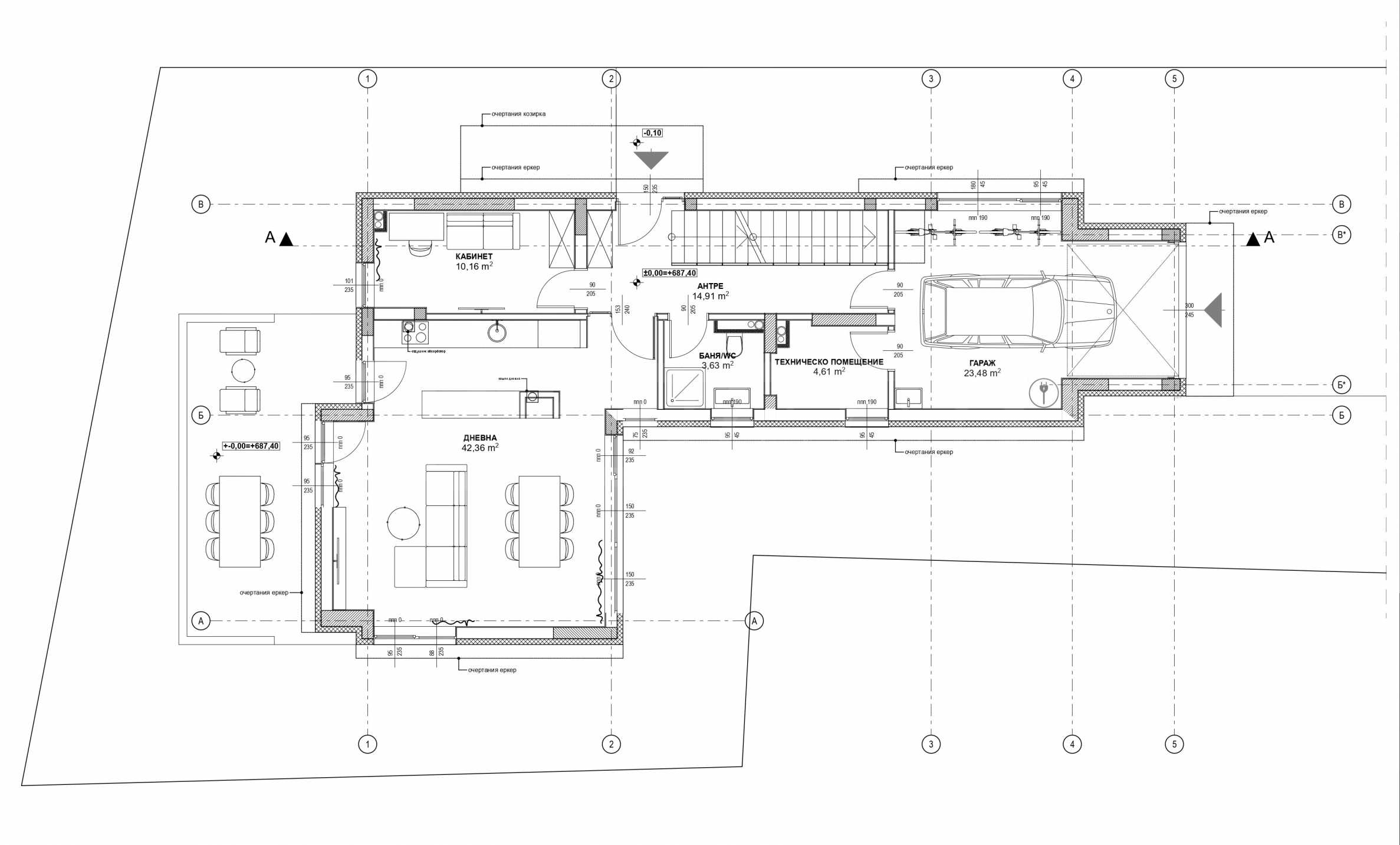 • First floor – spacious living area with kitchen and dining room and direct access to the yard. Also located on this level are a study/office, bathroom with toilet, technical room and a garage for one car.