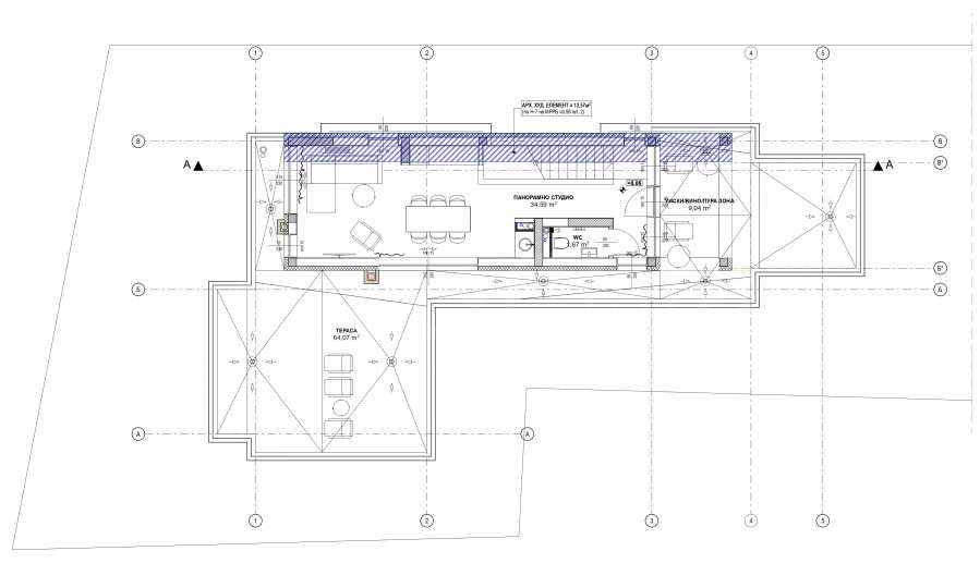 • Third floor – panoramic studio with spacious terraces, suitable for a recreation area, hobby space or home office, with open views of the city and Vitosha Mountain.