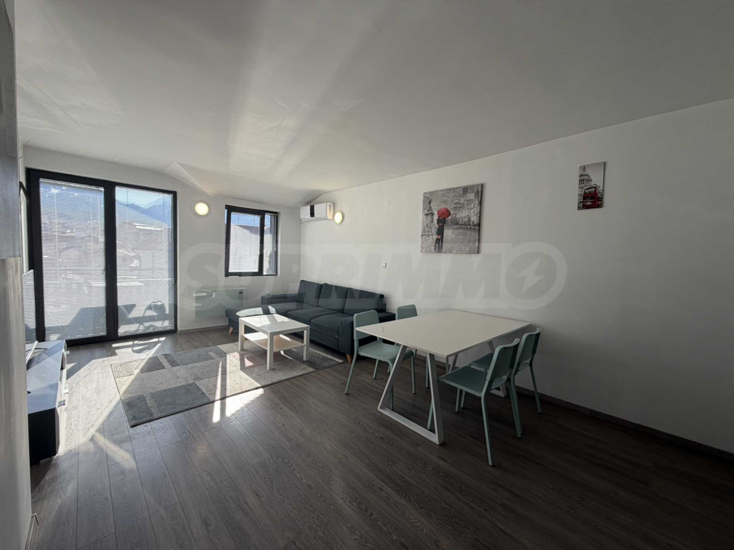 We present a furnished one-bedroom apartment in a residential building with no maintenance fee, near the ski lift in Bansko.
