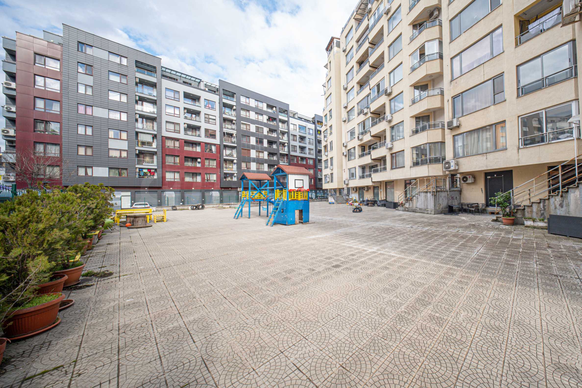 The building has an enclosed courtyard, providing a safe space for children to play and peace of mind for parents.