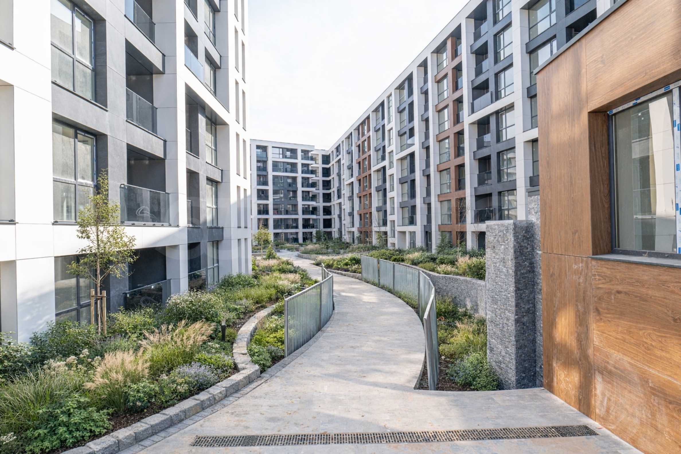 The facade of the building is made of Etalbond and HPL cladding. The complex has an Orona 3G X15 elevator, and the properties have 5-chamber PVC windows, triple glazing, air conditioning and armored entrance doors.