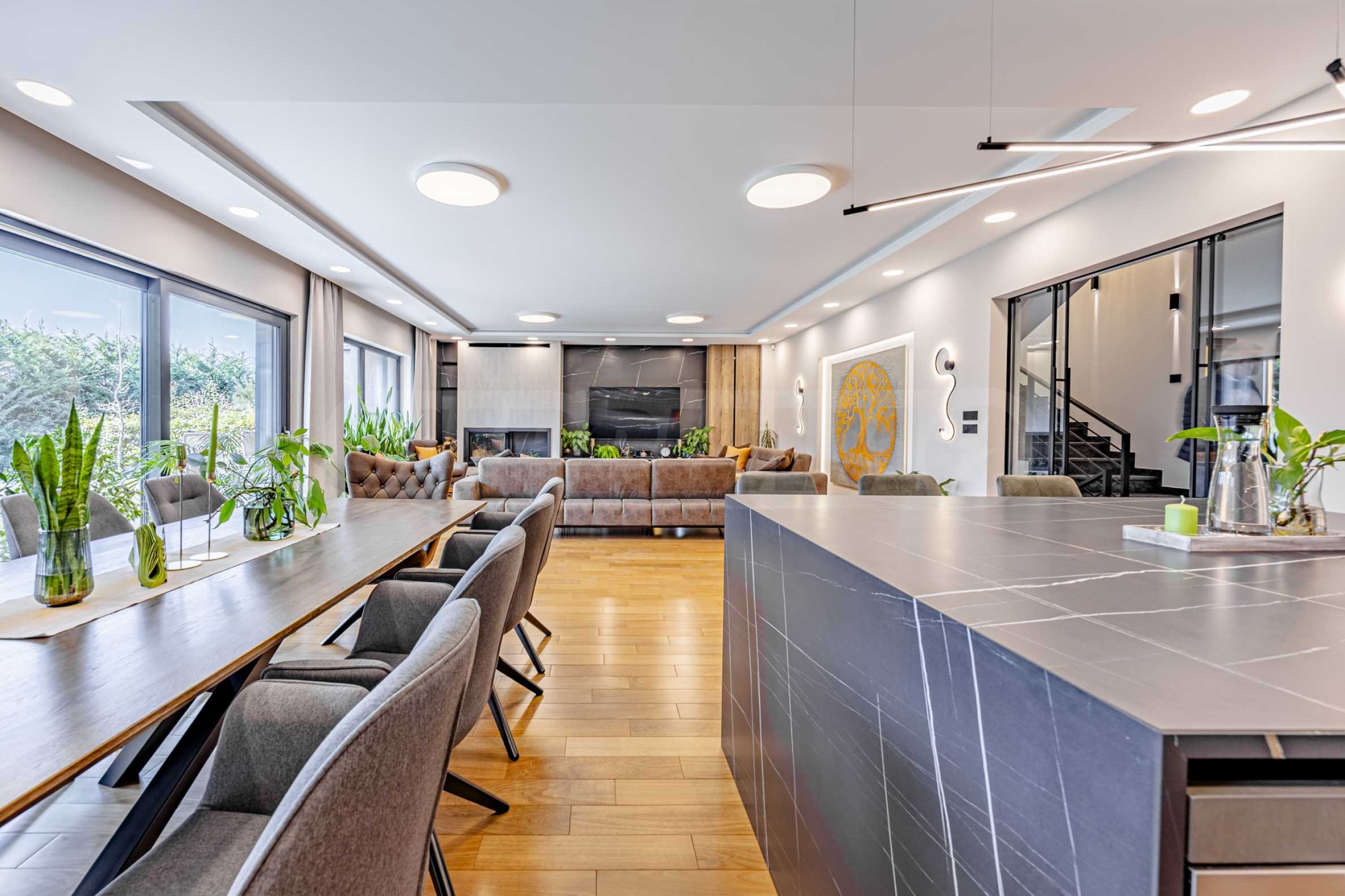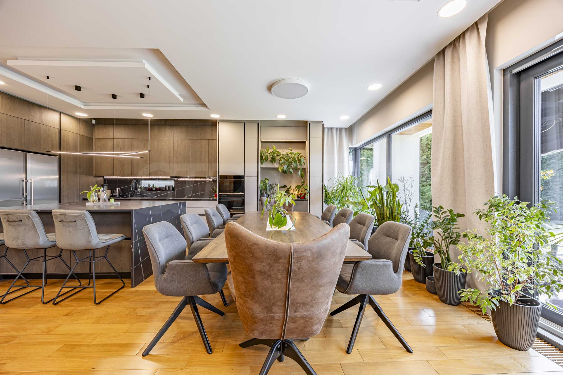 The property impresses with spacious interior spaces, its own SPA and relaxation area and a beautiful panorama of Vitosha Mountain, which can be seen both from the yard and from some of the bedrooms. The house was created with attention to detail and high quality of execution, combining luxurious materials, functional layout and modern technical solutions, ensuring comfort and autonomy.