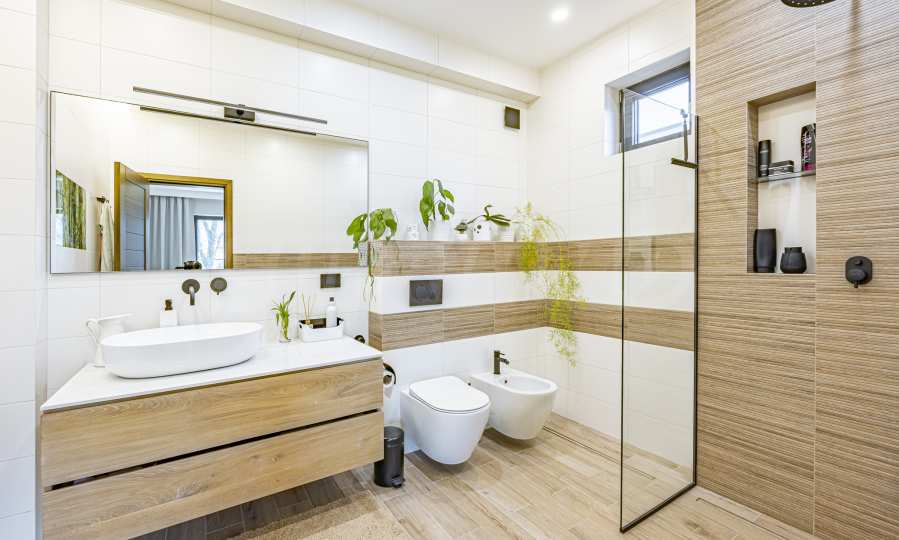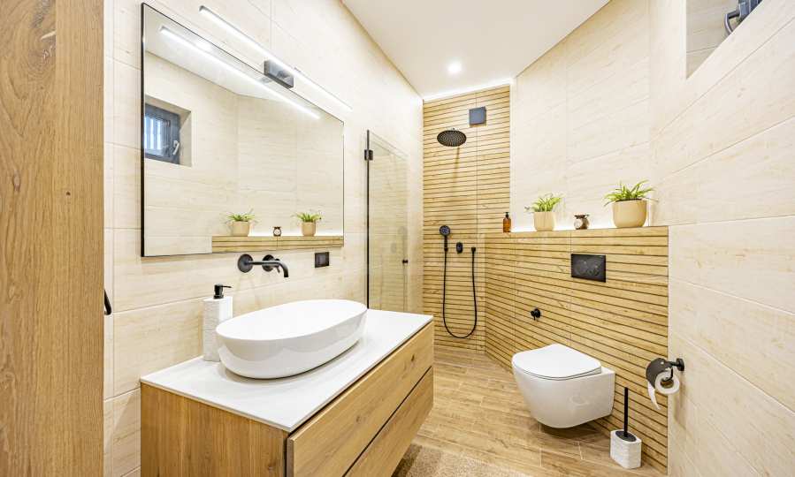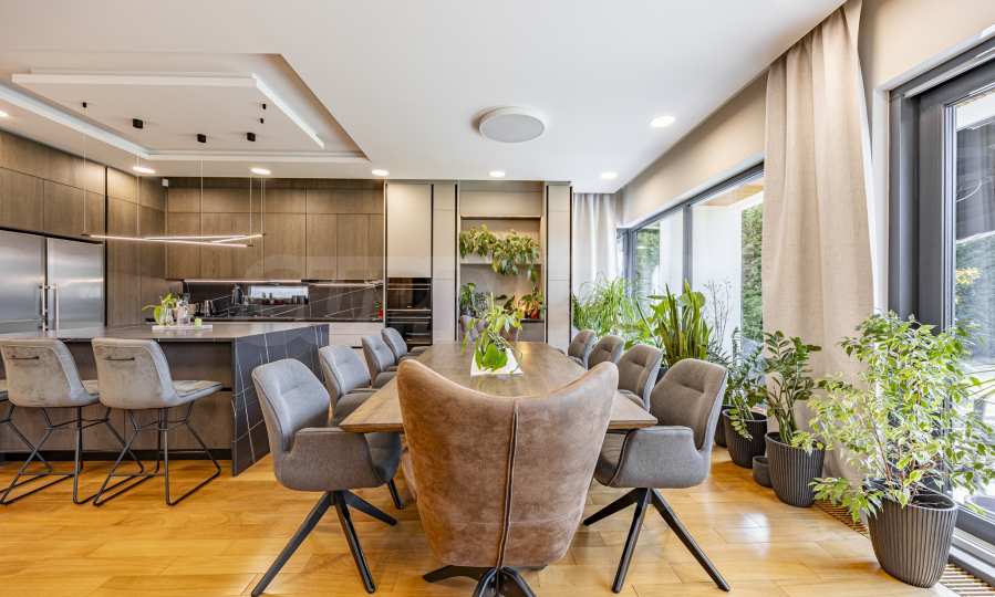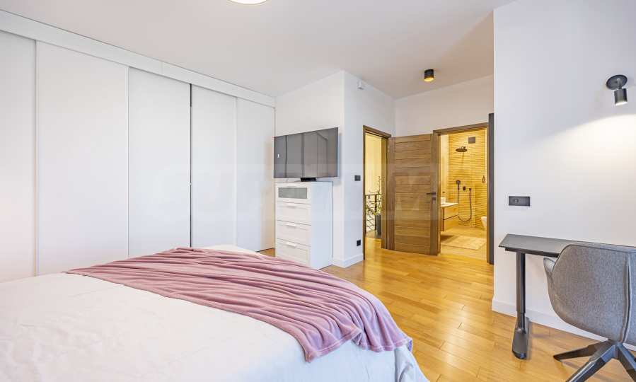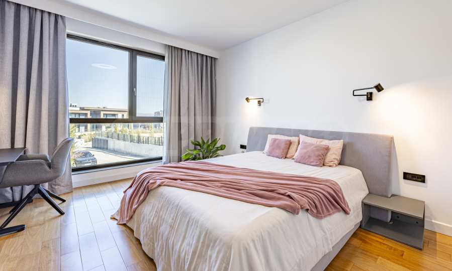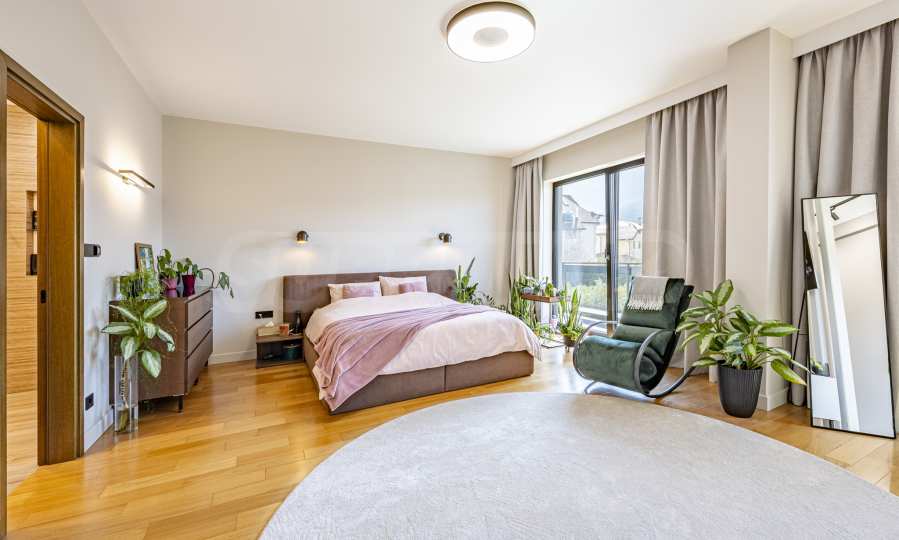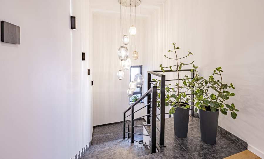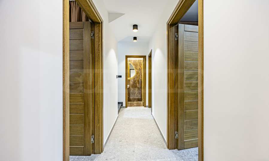 The interior of the house is distinguished by spacious rooms, high-class materials and carefully selected details. The flooring is made of natural walnut parquet and granite tiles, for elegance and durability over time. The heating is solved by gas underfloor heating, providing comfort and energy efficiency in all seasons.