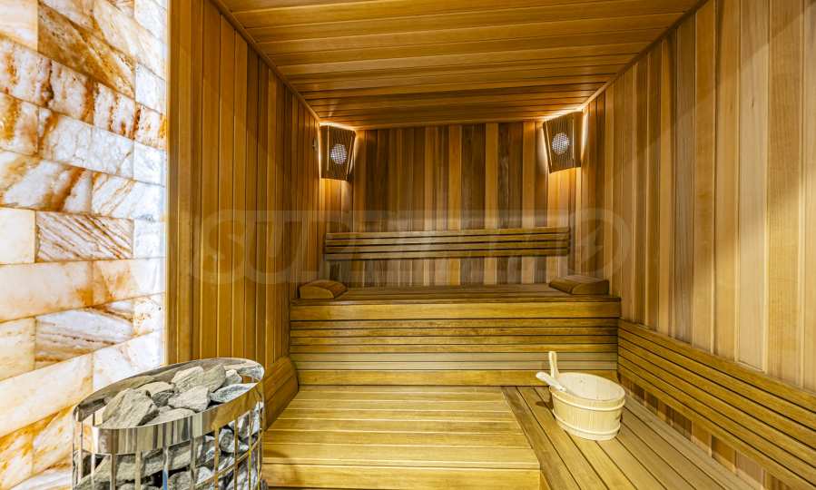 There is a separate relaxation area with a living room and a jacuzzi, complemented by a sauna and a steam bath, which provide the opportunity for true privacy and recovery. The level also has its own bathroom with toilet.
