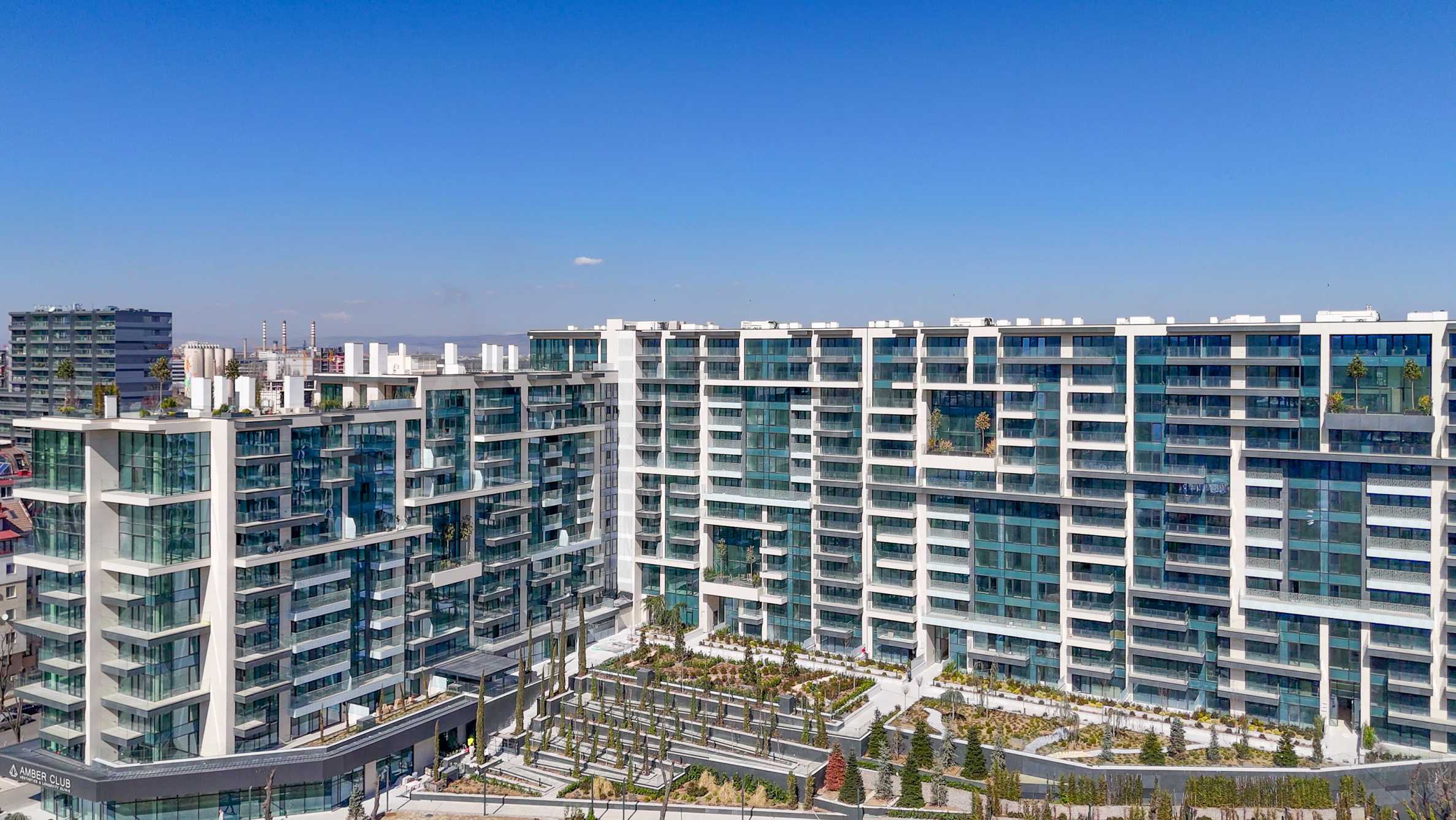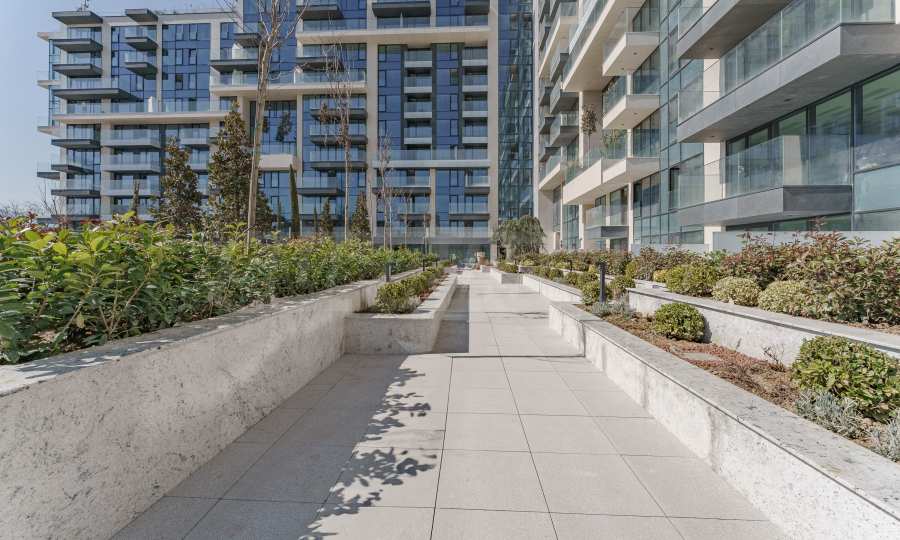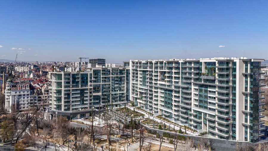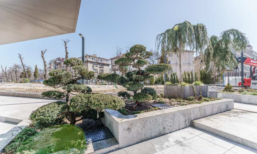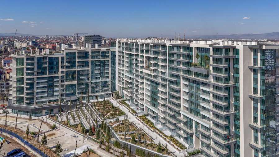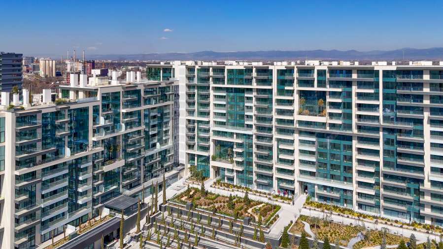 The building has an underground area of 25,833.30 m2, above-ground levels - 44,065.59 m2 and a total built-up area of 69,898.89 m2. The residence has its own internal park, landscaped interior spaces and common terraces for relaxation and entertainment. On the ground floor there is a Kaufland supermarket, a beauty center, a cafe, shops and a fitness center on two levels.