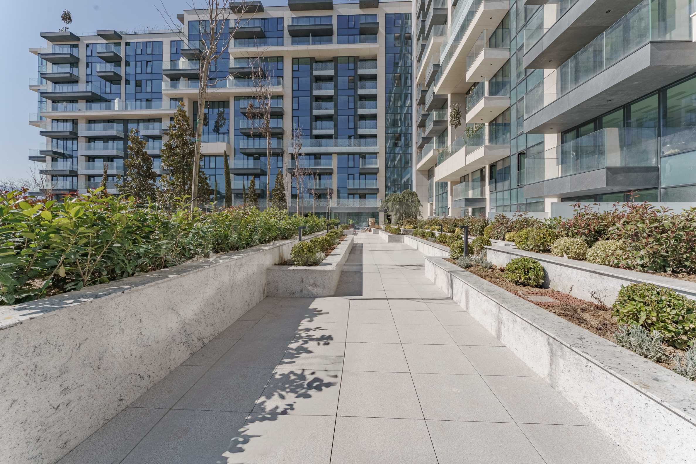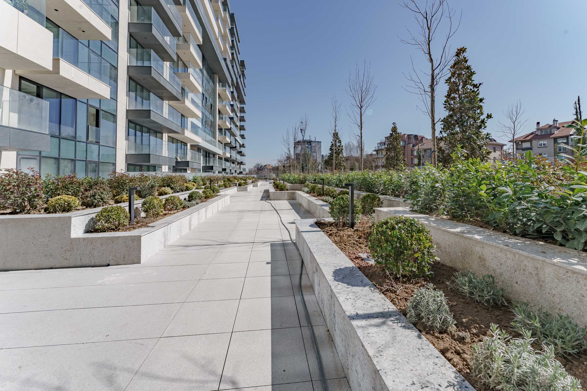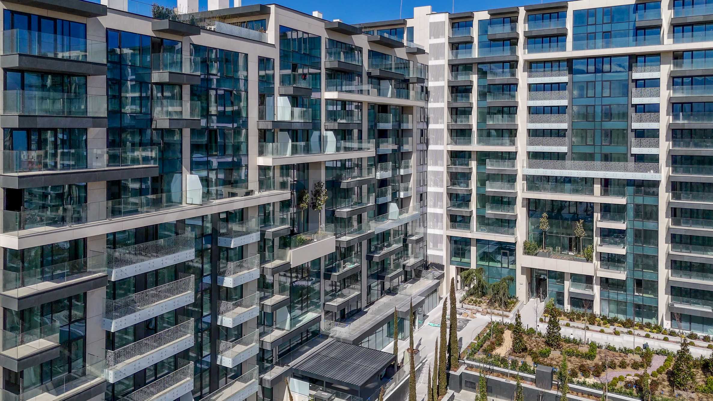 The building has an underground area of 25,833.30 m2, above-ground levels - 44,065.59 m2 and a total built-up area of 69,898.89 m2. The residence has its own internal park, landscaped interior spaces and common terraces for relaxation and entertainment. On the ground floor there is a Kaufland supermarket, a beauty center, a cafe, shops and a fitness center on two levels.