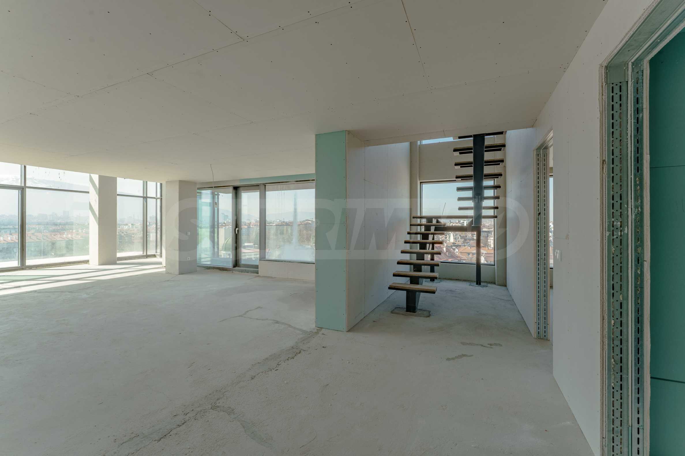 The property is situated in entrance "A", located on floors 10 and 11 with a total area of 348.96 m2 and the following distribution: 3 bedrooms, living room with dining room and kitchenette with views of Vitosha Mountain, 4 bathrooms with WC, entrance hall, terraces, storage room and 3 wardrobe rooms.