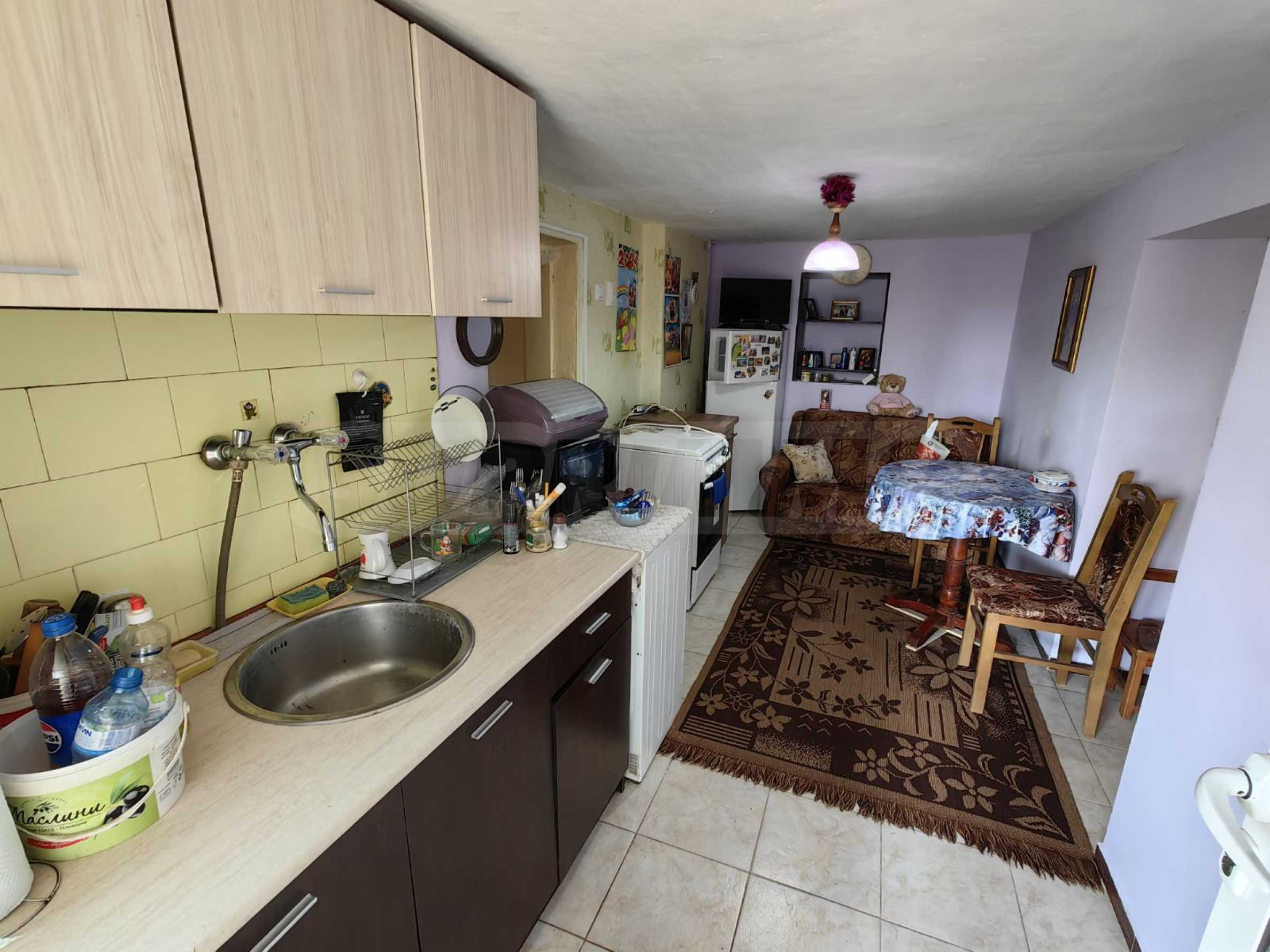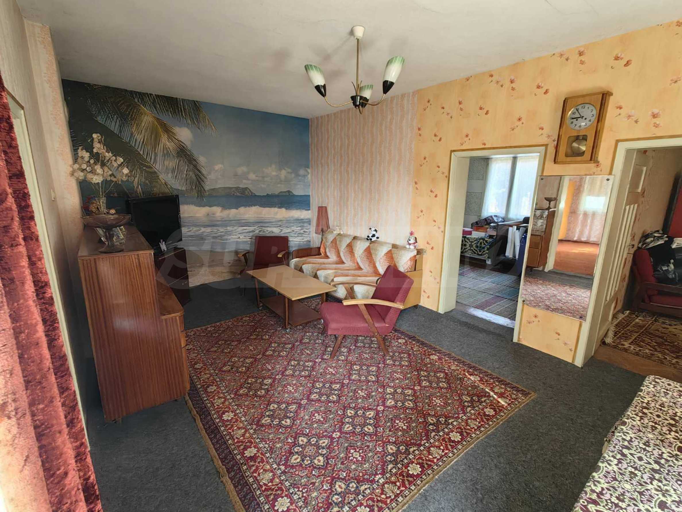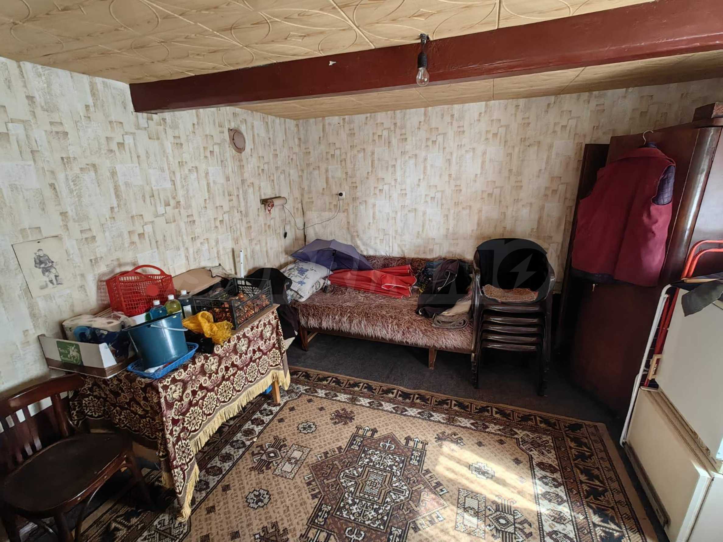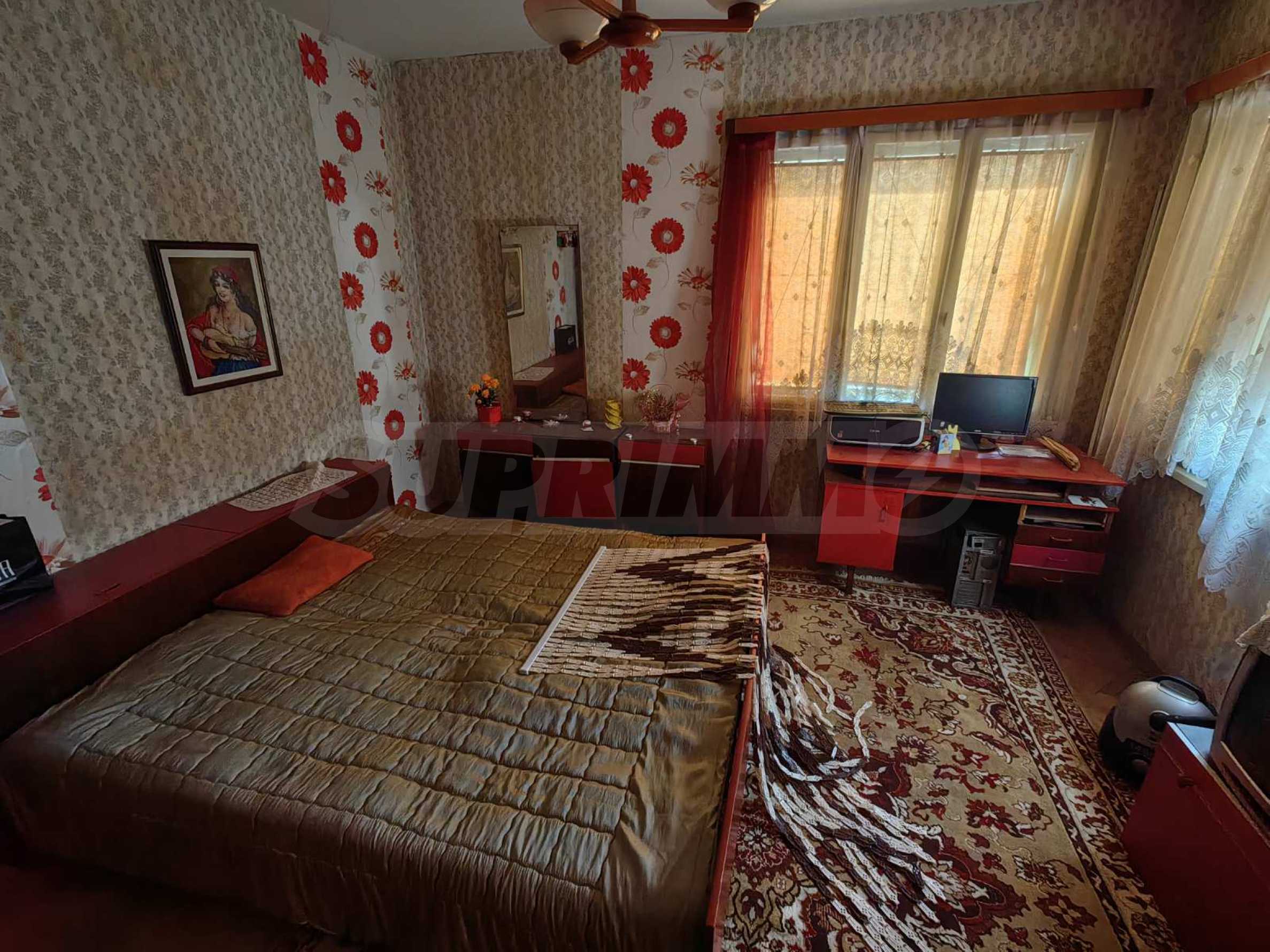 The interior of the house is well maintained and creates a warm and cozy atmosphere. The flooring is natural wooden parquet, the windows are fitted with wooden frames, and the walls are finished with latex paint, contributing to the classic character of the property and allowing easy refreshing or modernization according to the preferences of the future owner.